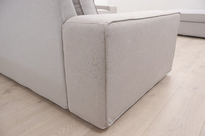 Deretter ser vi etter skader både i konstruksjonen og i stoffet, for så å utbedre disse. Videre blir sofaen grundig støvsuget med industristøvsuger før renseprosessen starter.