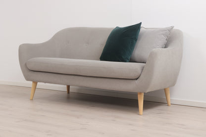 Nyrenset | Lys grå Jysk Egedal 2,5-seter sofa med eikebein