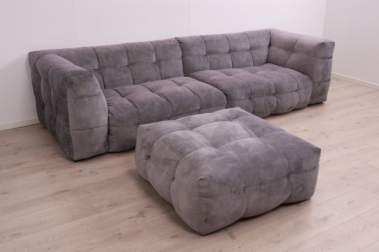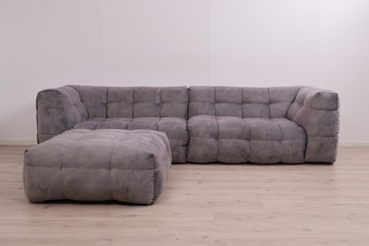 Nyrenset | Lys grå Michelin 4-seter modulsofa med puff i velur
