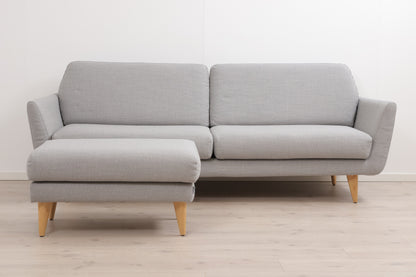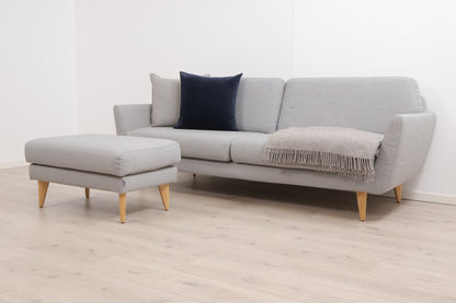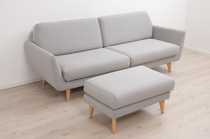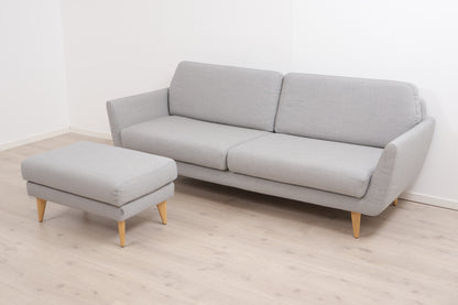 Nyrenset | Lys grå SITS Rucola 3-seter sofa med puff og eikebein