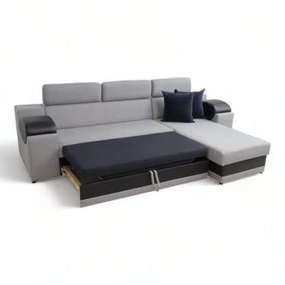 Nyrenset | Lys grå sovesofa med sjeselong