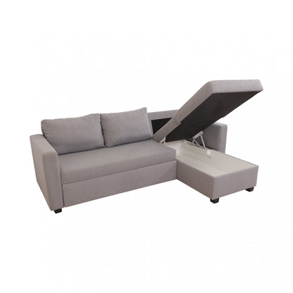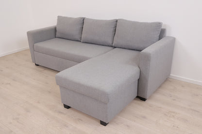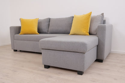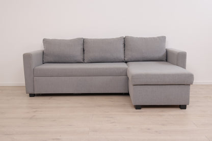 Nyrenset | Lys grå sovesofa med sjeselong og oppbevaring