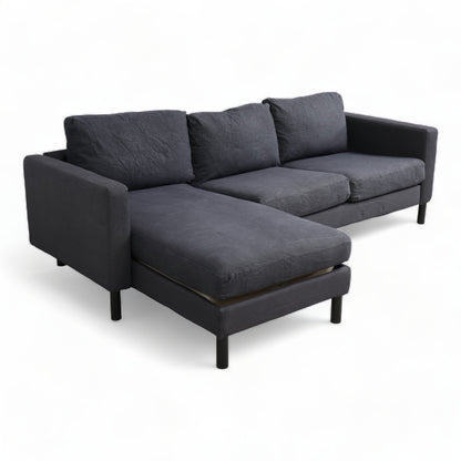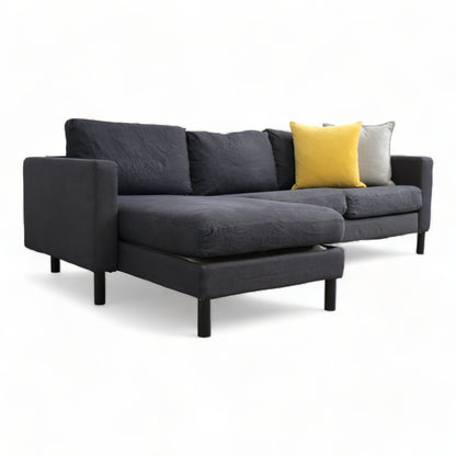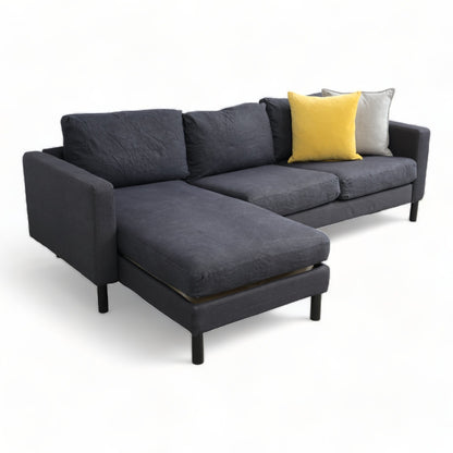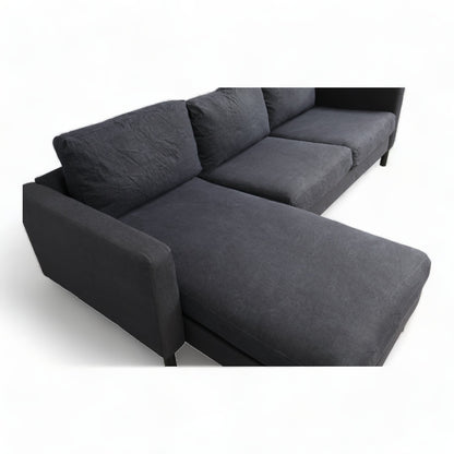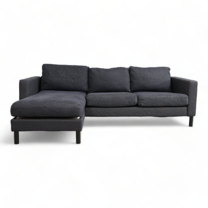 Nyrenset | Mørk blå denim IKEA Karlstad sofa med sjeselong