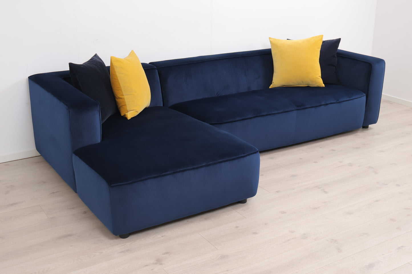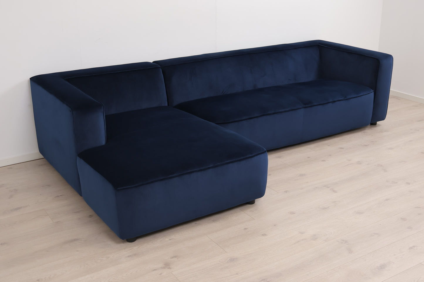 Nyrenset | Mørk blå Hudson hjørnesofa med åpen ende i velur