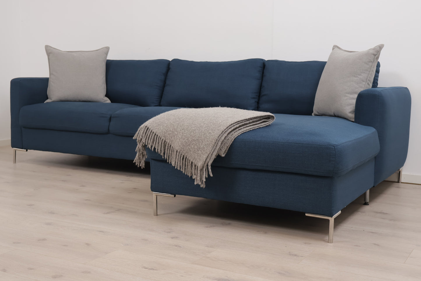 Nyrenset | Mørk blå sjeselongsofa