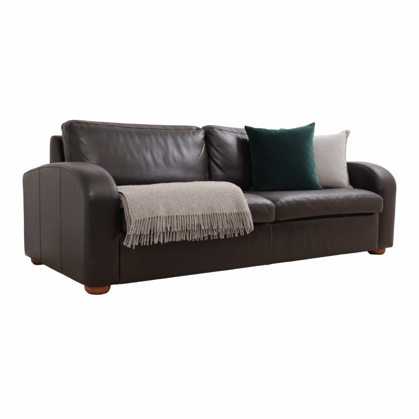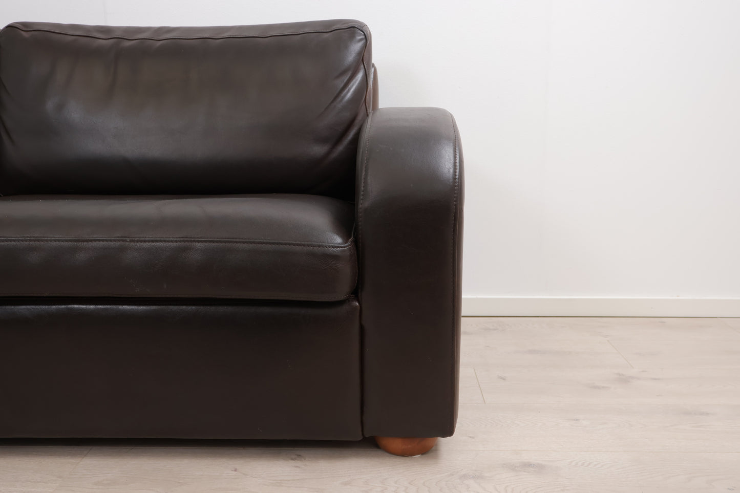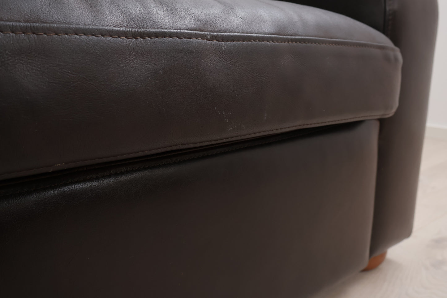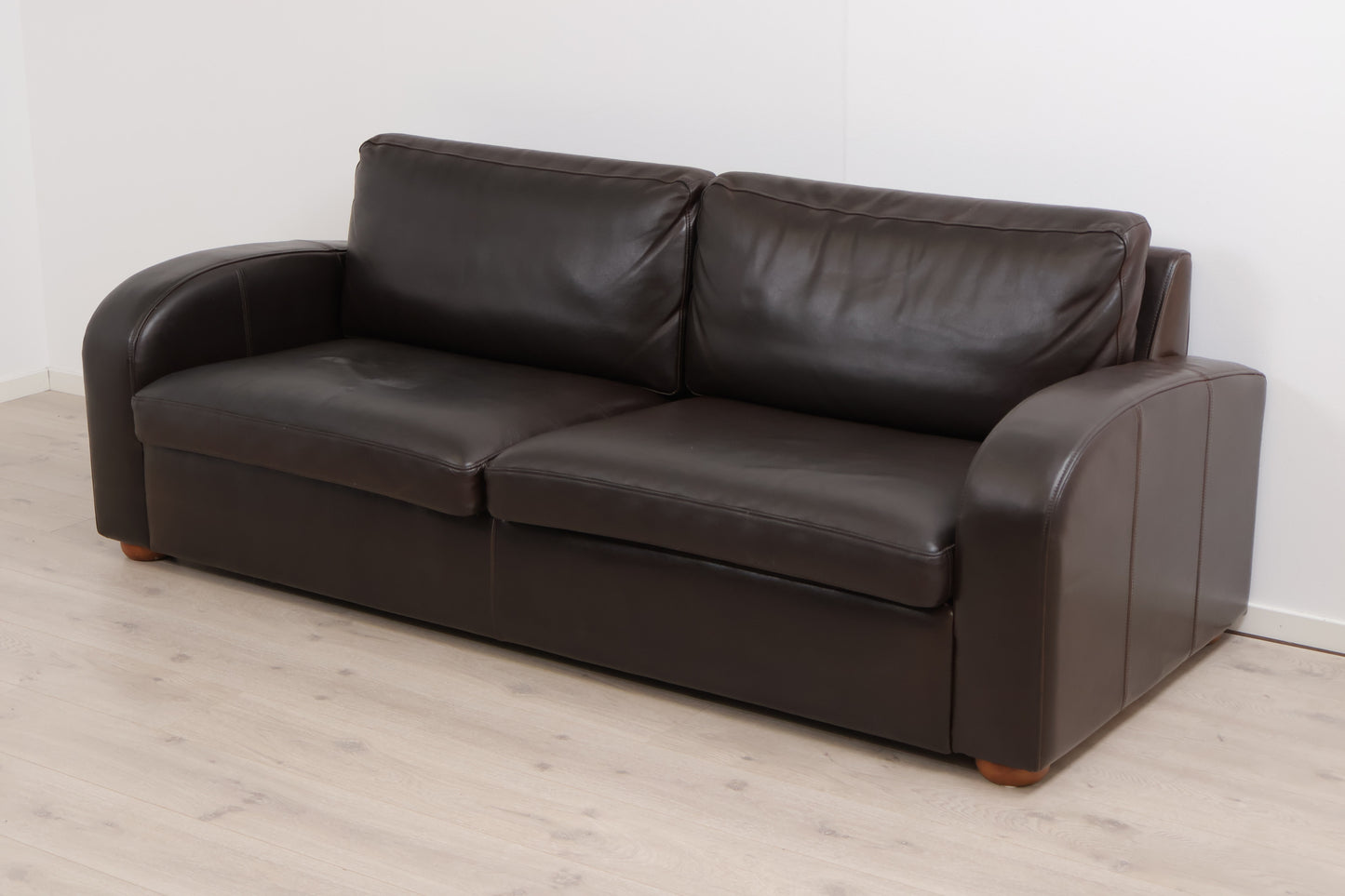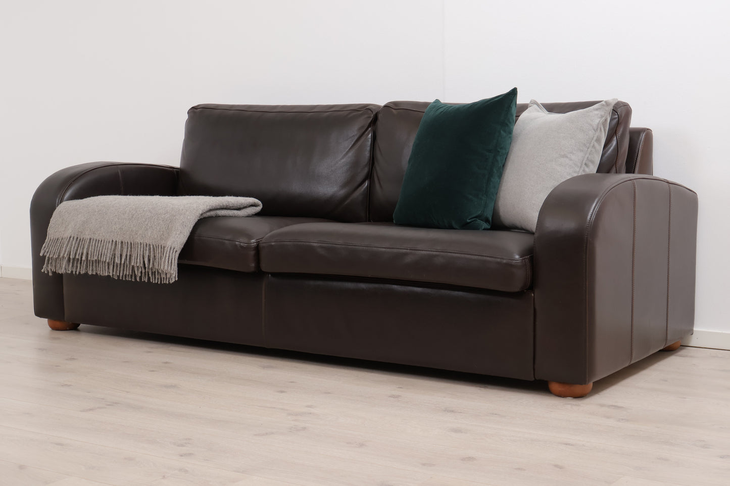 Nyrenset | Mørk brun 3-seter skinnsofa