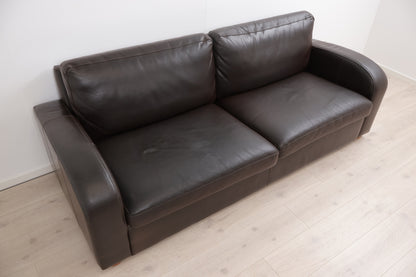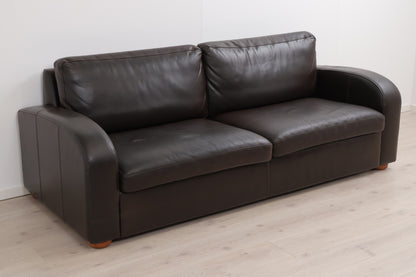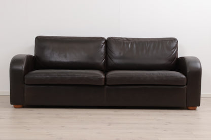 Nyrenset | Mørk brun 3-seter skinnsofa