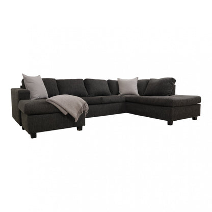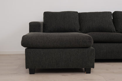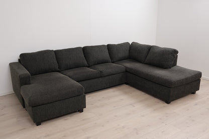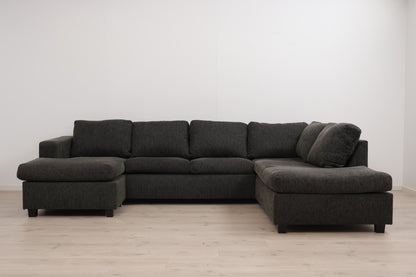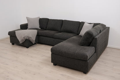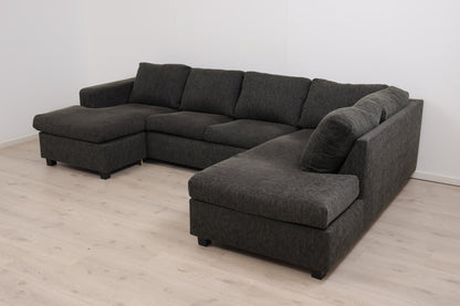 Nyrenset | Mørk grå/grønn u-sofa med sjeselong