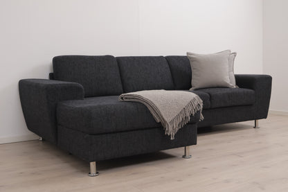 Nyrenset | Mørk grå sjeselongsofa