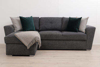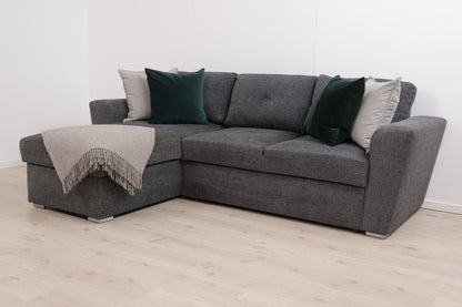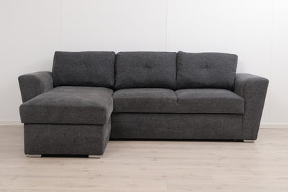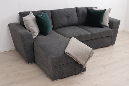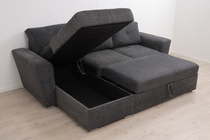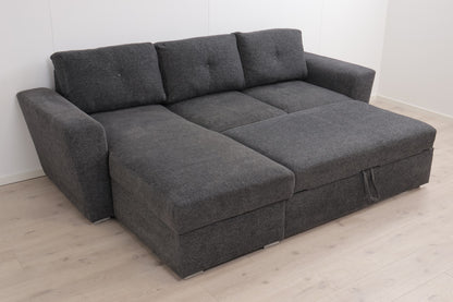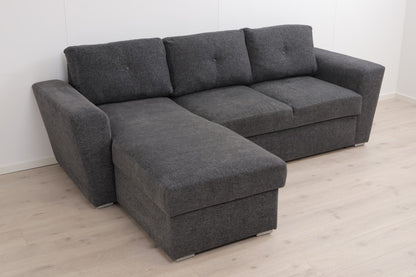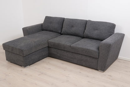 Nyrenset | Mørk sovesofa med sjeselong og oppbevaring