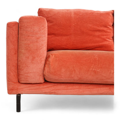 Den tilbyr myk sittekomfort med skumfylte puter og slitesterkt tekstilstoff. Perfekt for et koselig hjørne i stuen. Hurtig levering tilgjengelig.