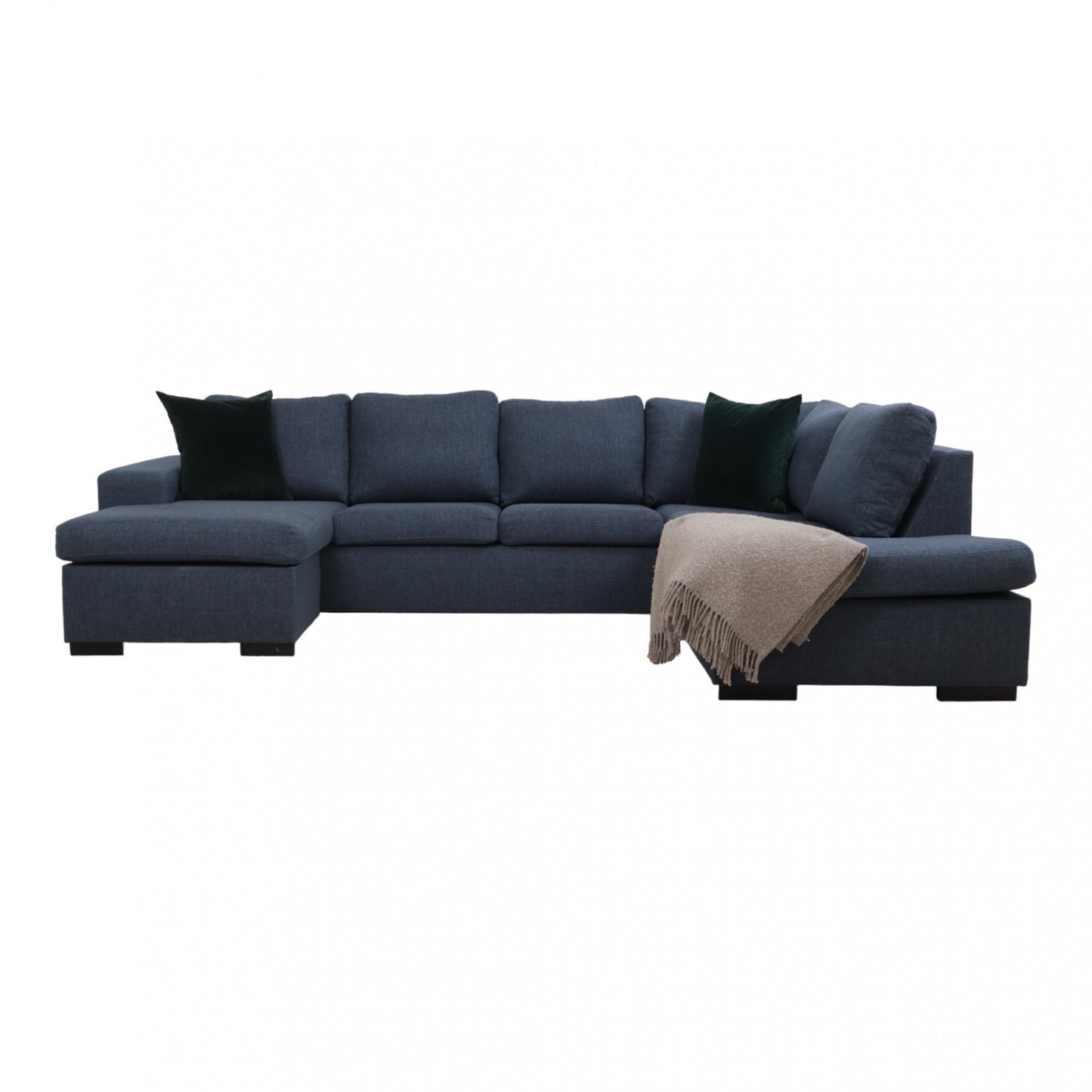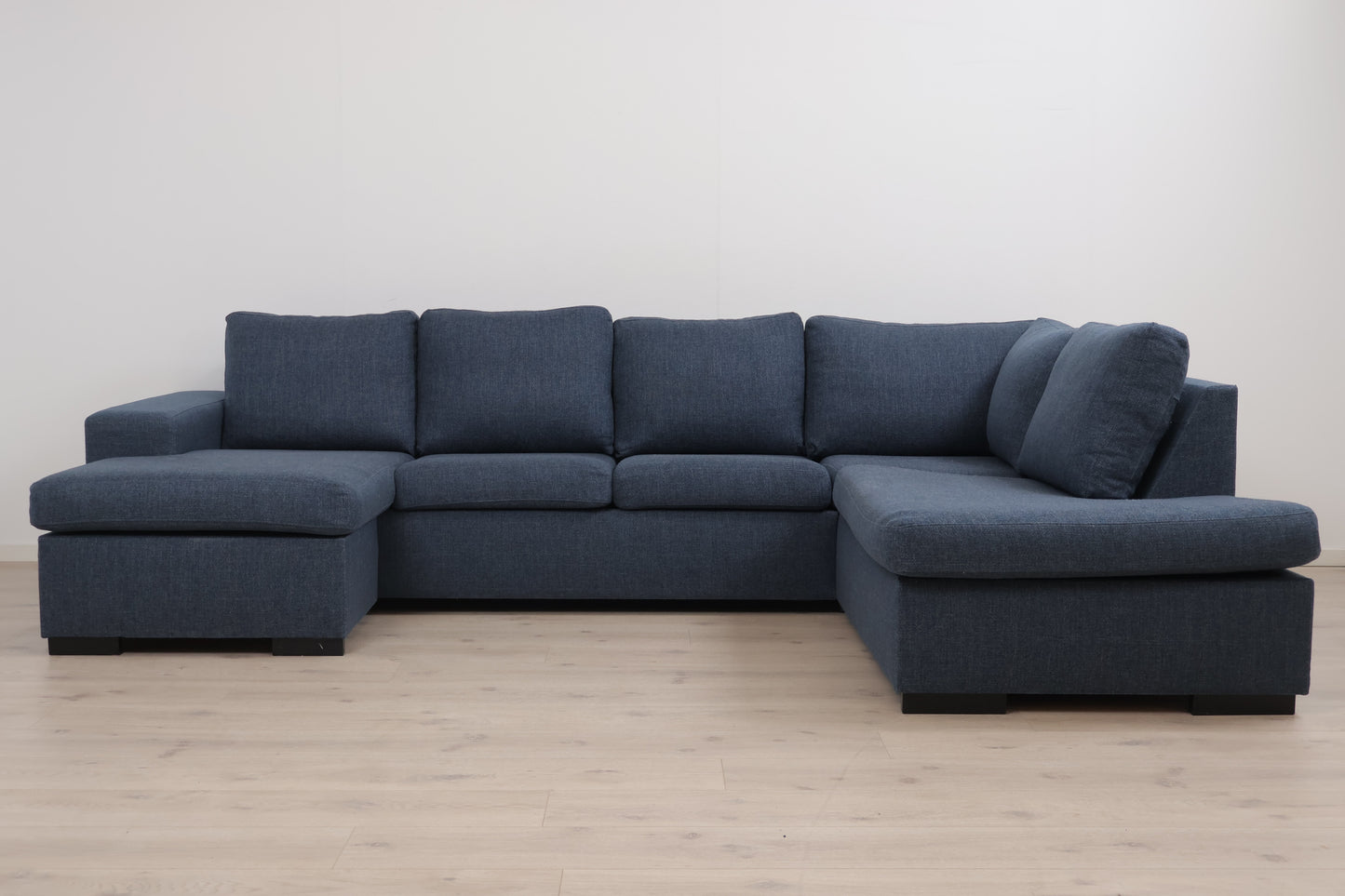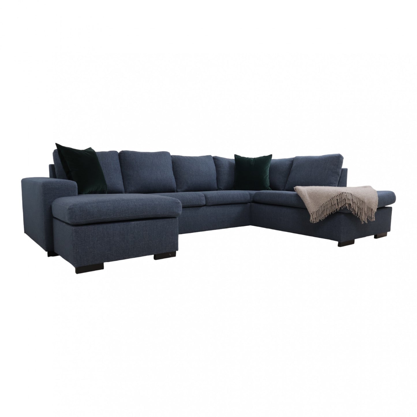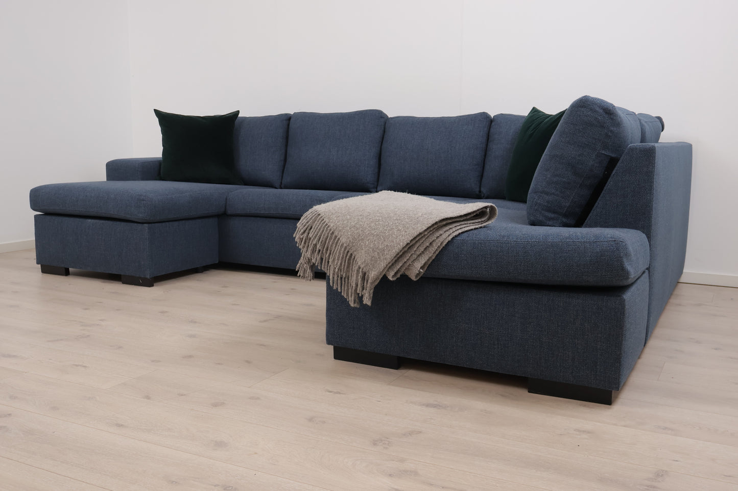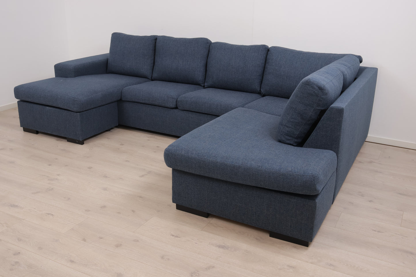 Nyrenset | Romslig blå u-sofa med sjeselong