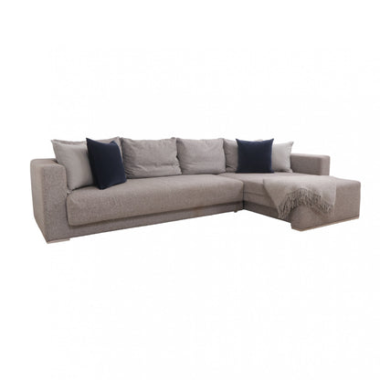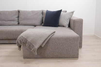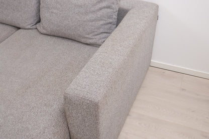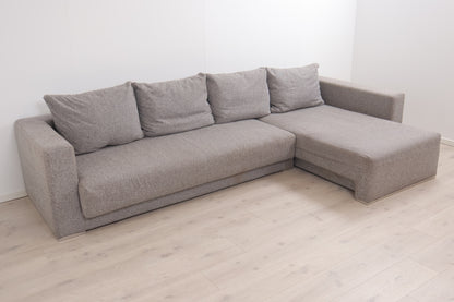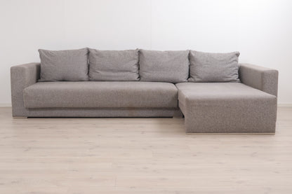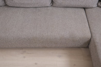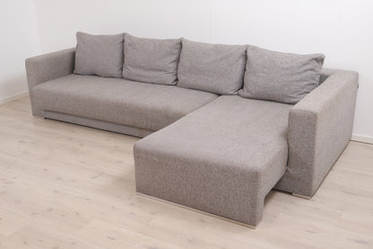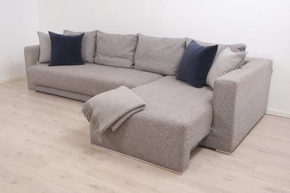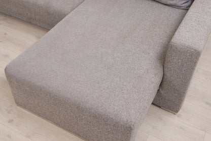 Nyrenset | Romslig grå/beige sjeselongsofa med dunputer i rygg