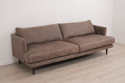 Nyrenset | Romslig grå/brun 3-seter skinnsofa