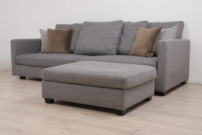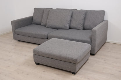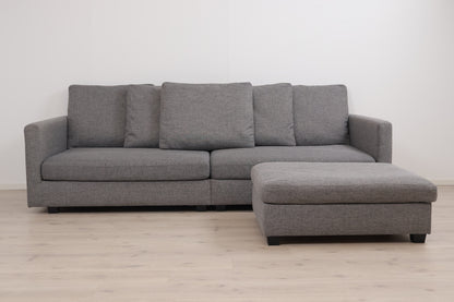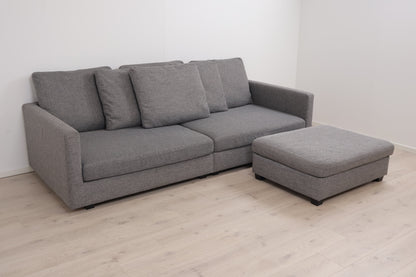 Nyrenset | Romslig grå Habitat Viking 3-seter sofa med puff