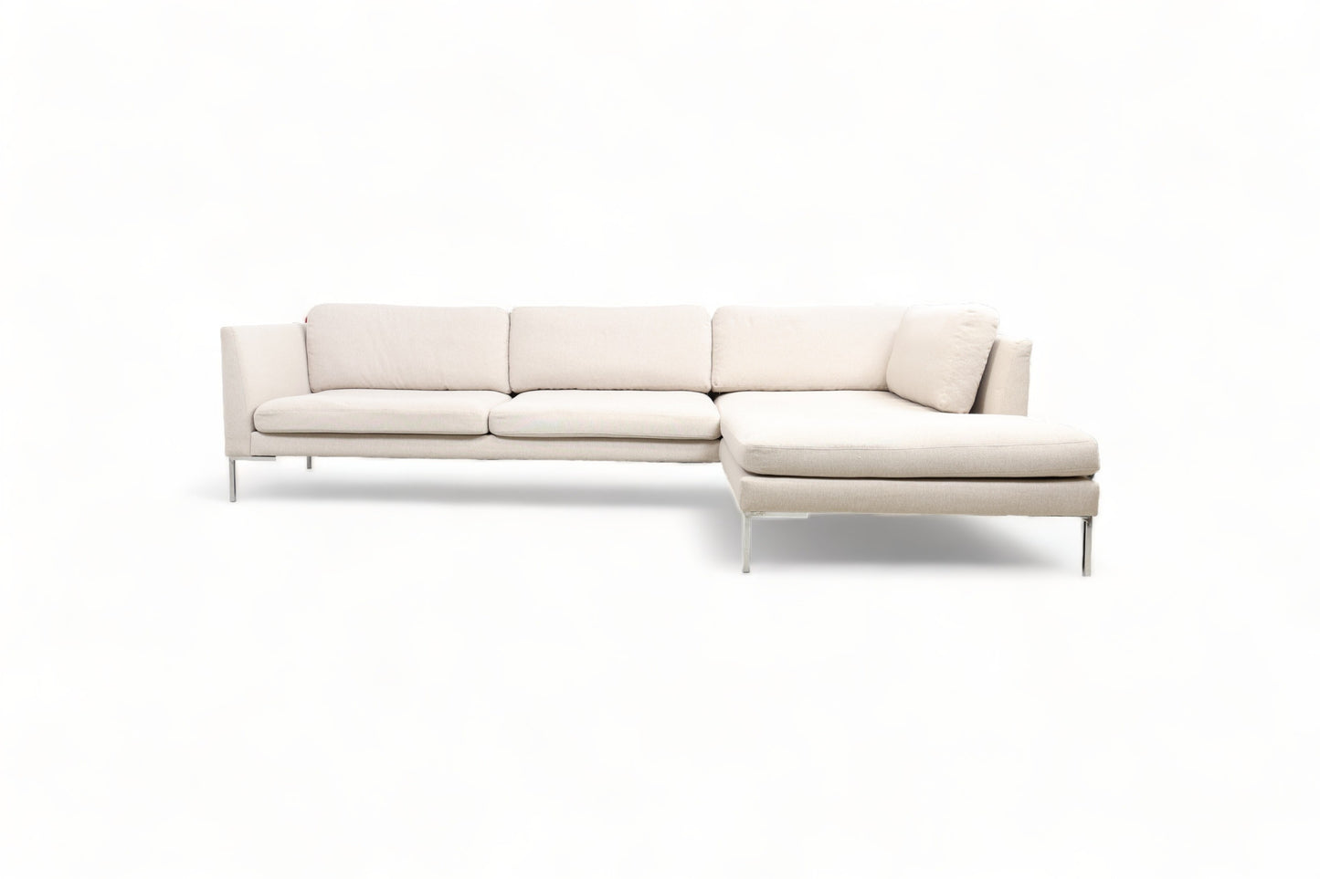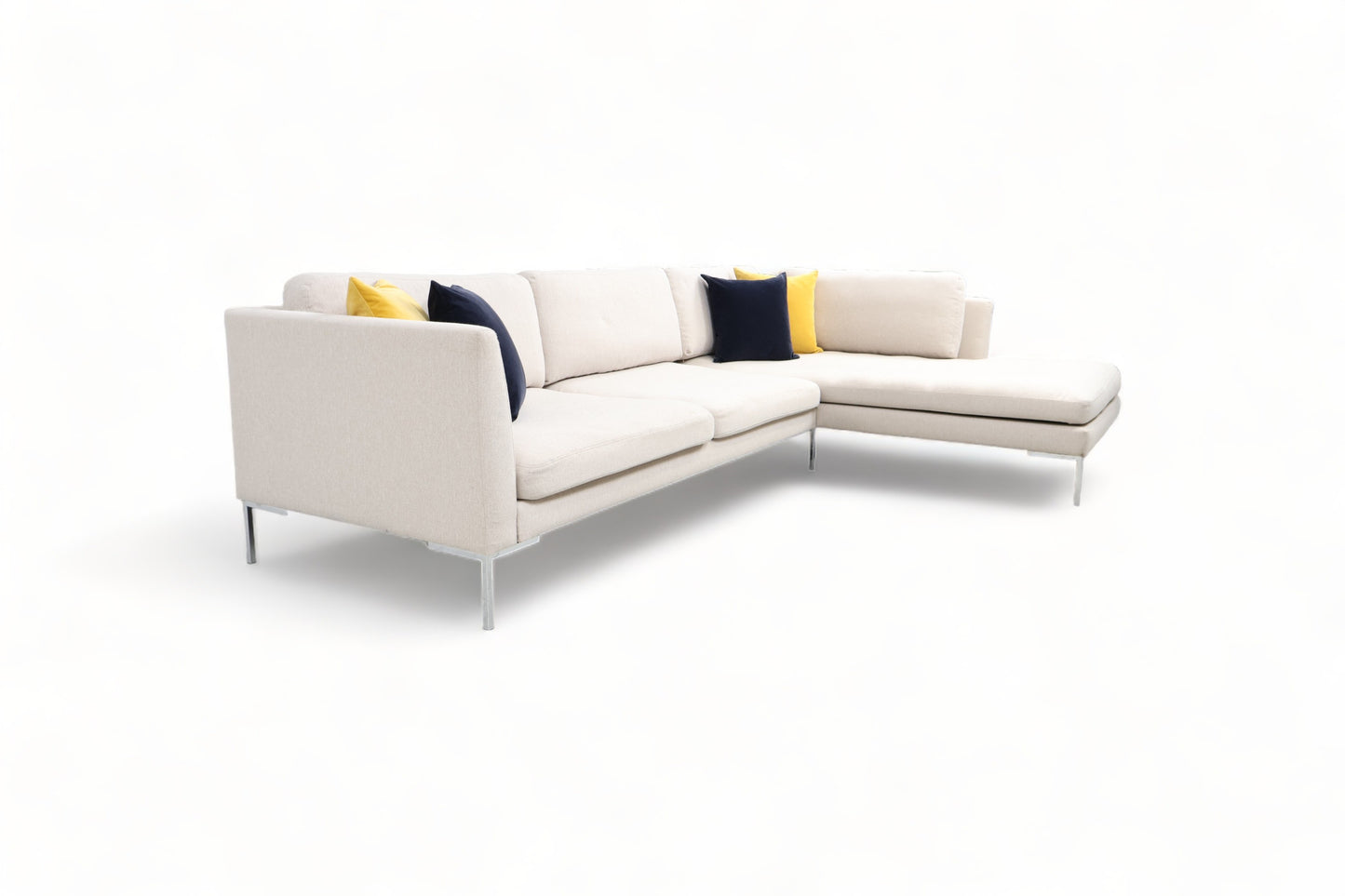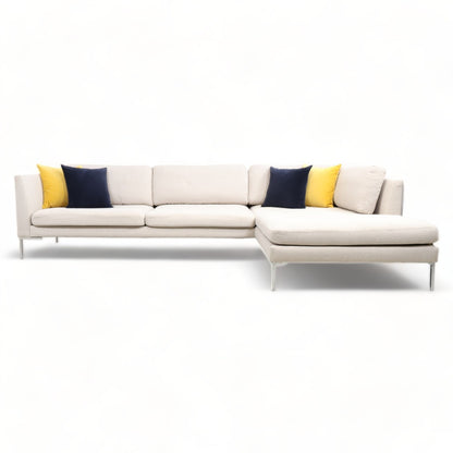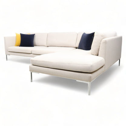 Nyrenset | Romslig lys beige hjørnesofa med åpen ende