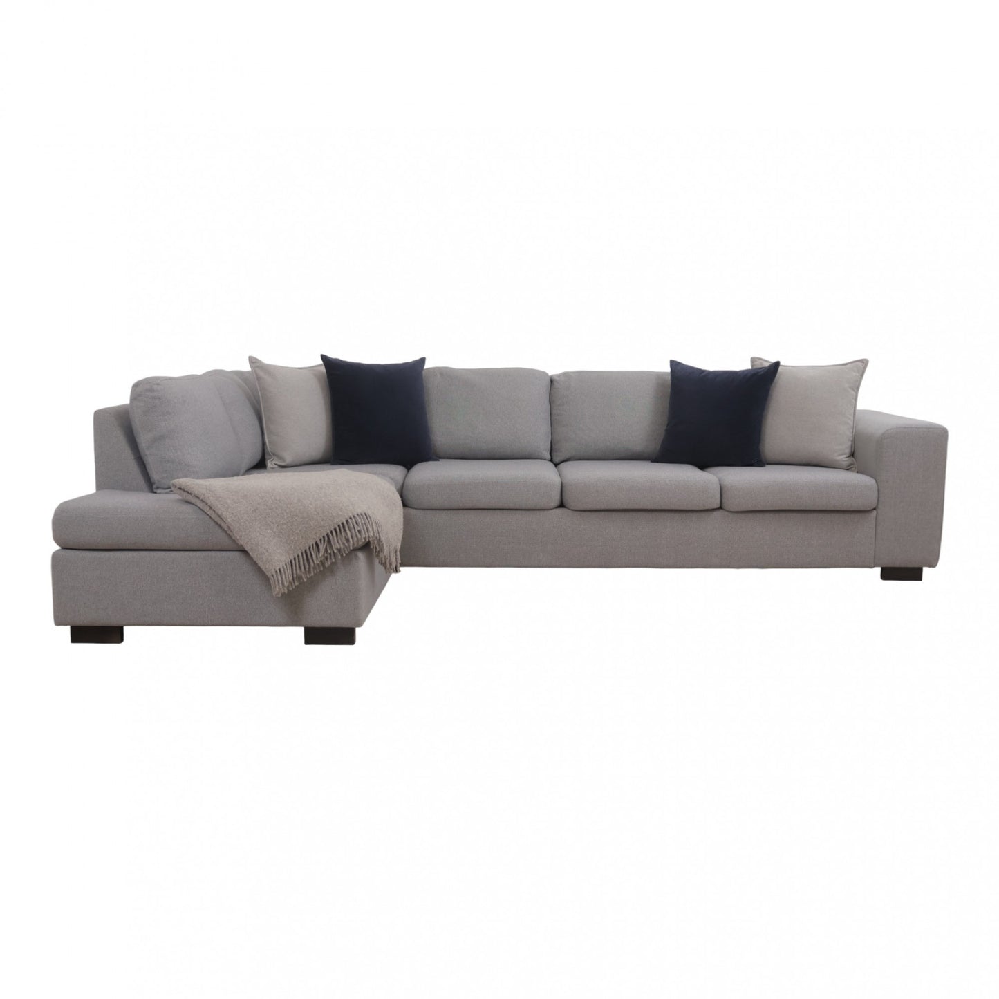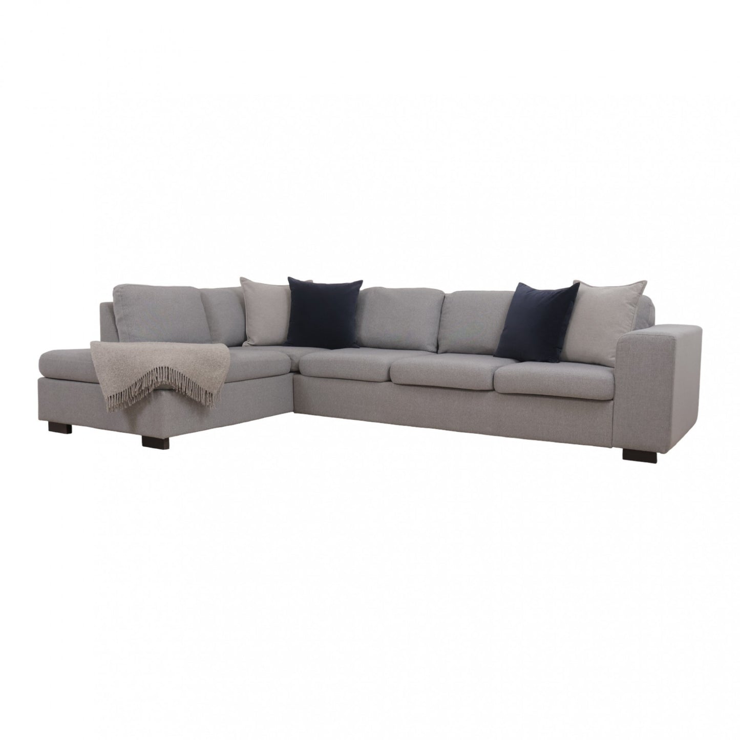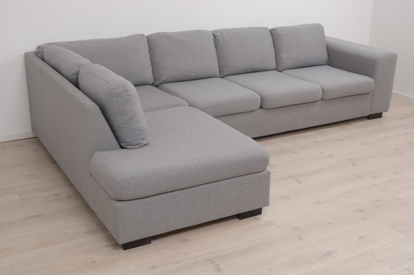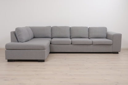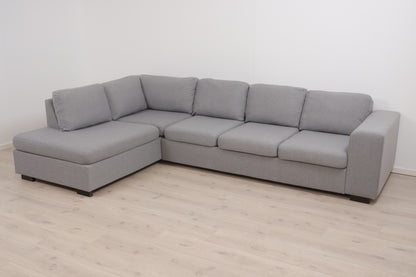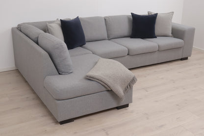 Nyrenset | Romslig lys grå hjørnesofa med åpen ende