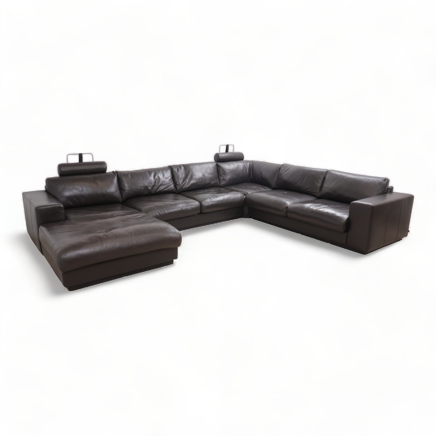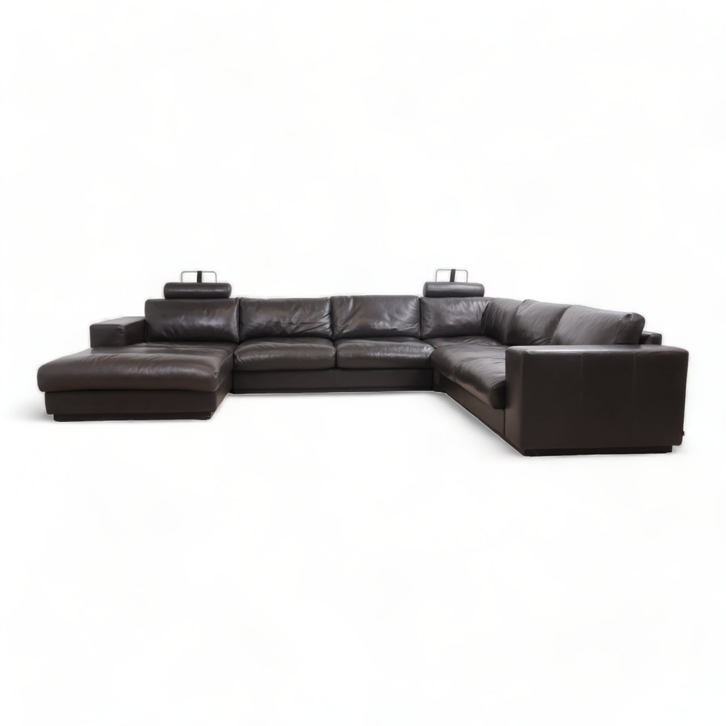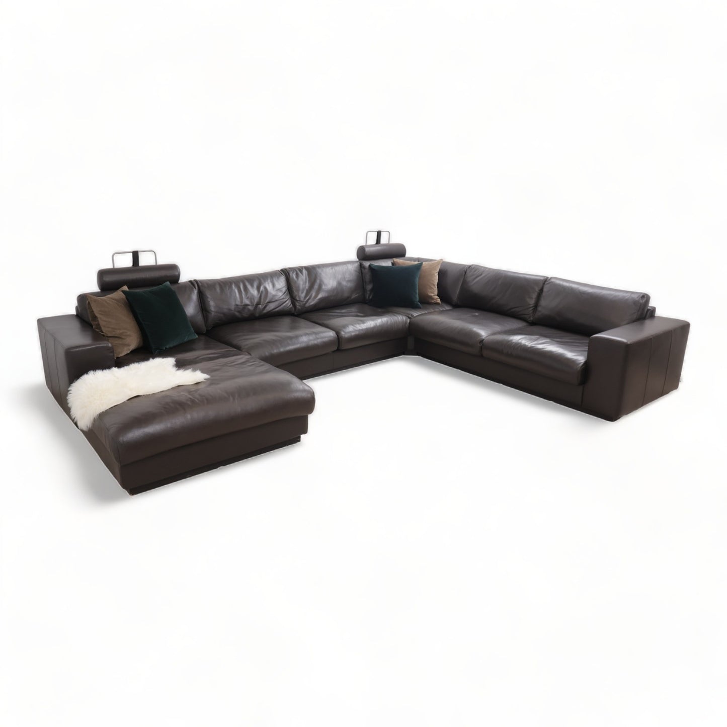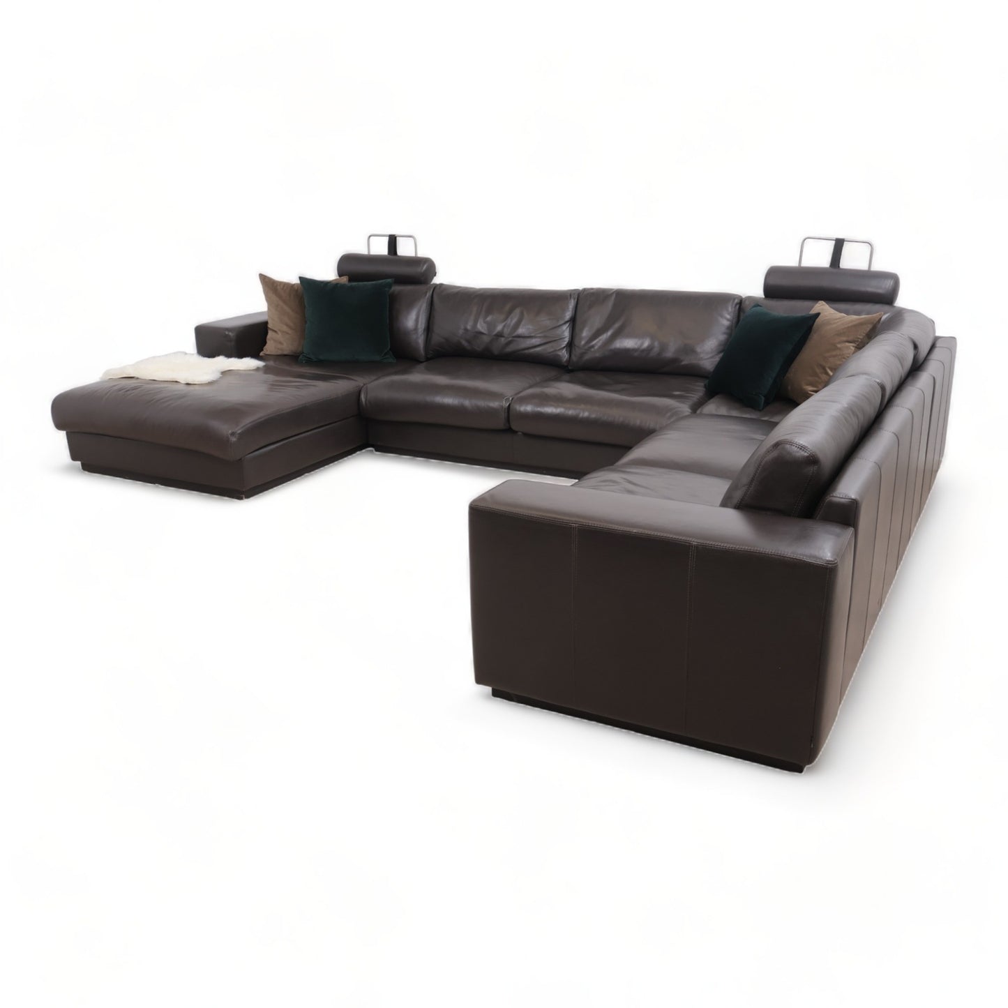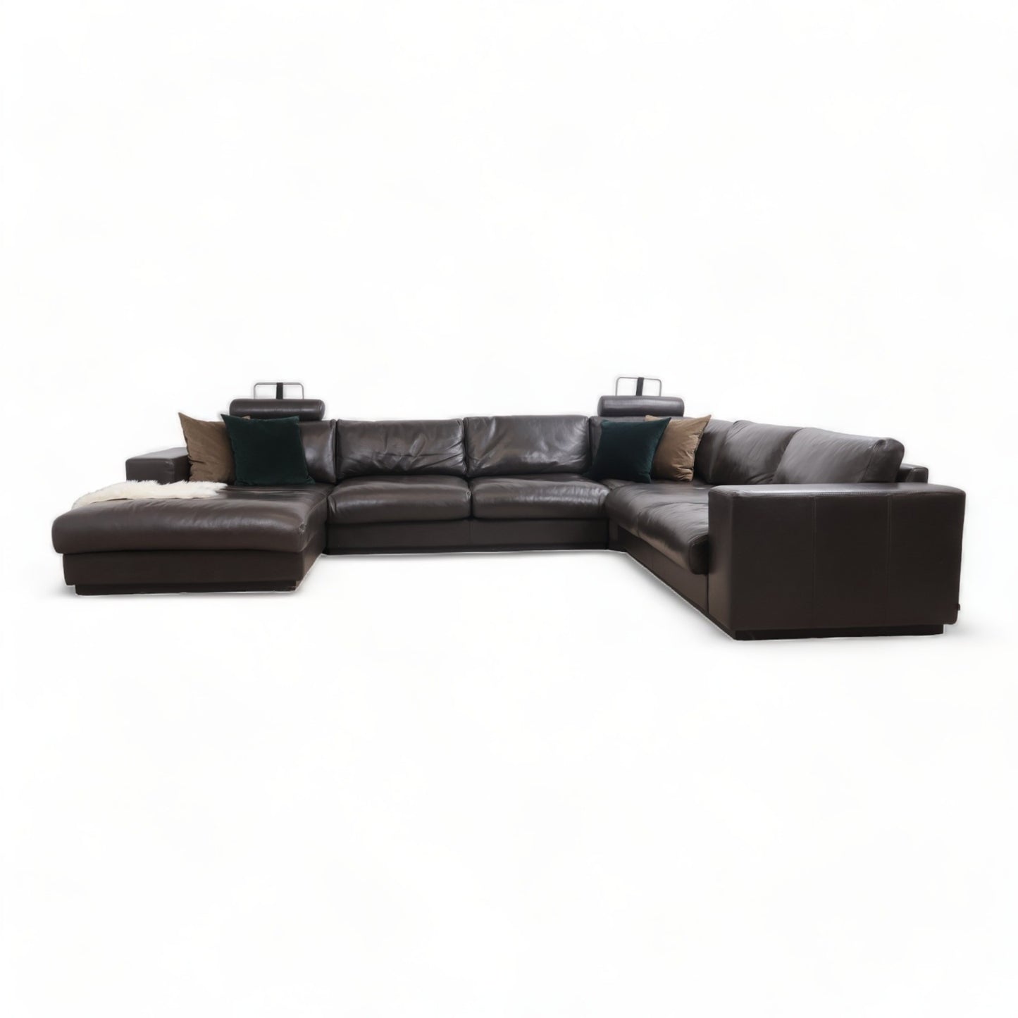Nyrenset | Romslig mørk brun Bolia Sepia u-sofa med sjeselong i skinn