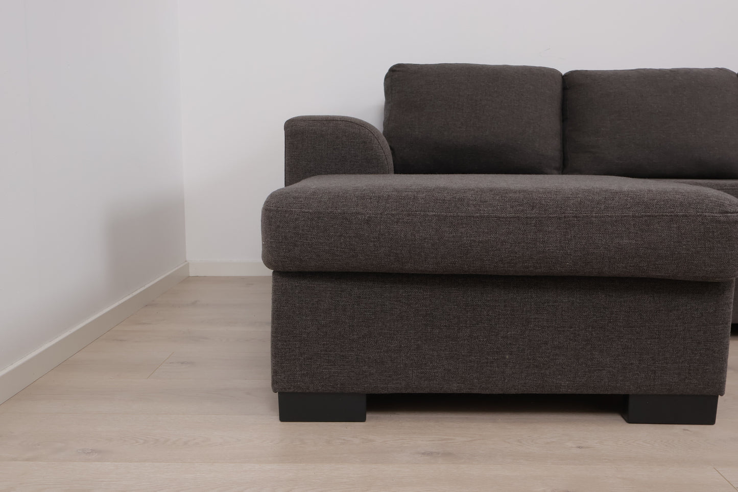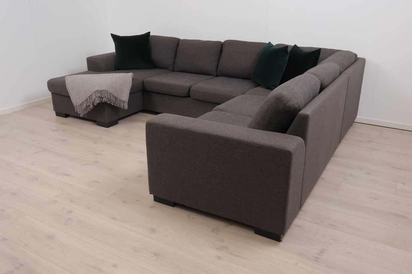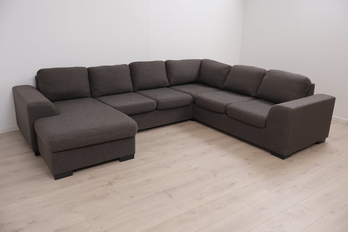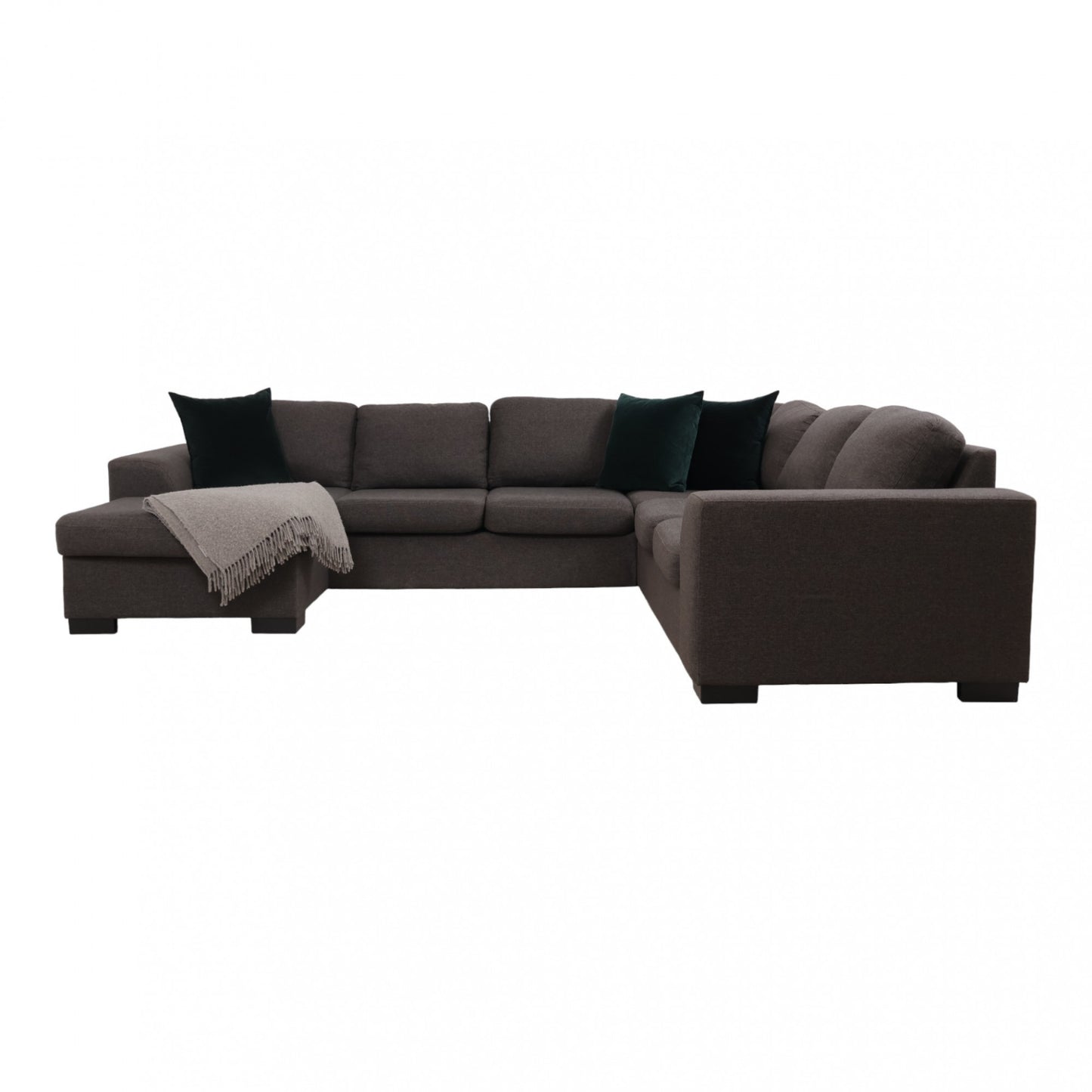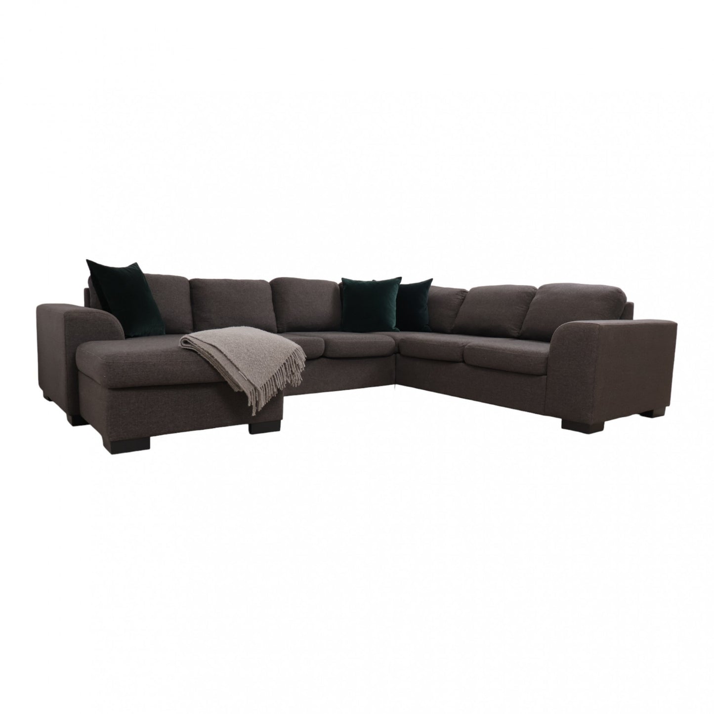 Nyrenset | Romslig mørk grå/brun u-sofa med sjeselong