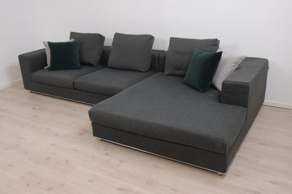 Nyrenset | Romslig og dyp grå/grønn sjeselongsofa