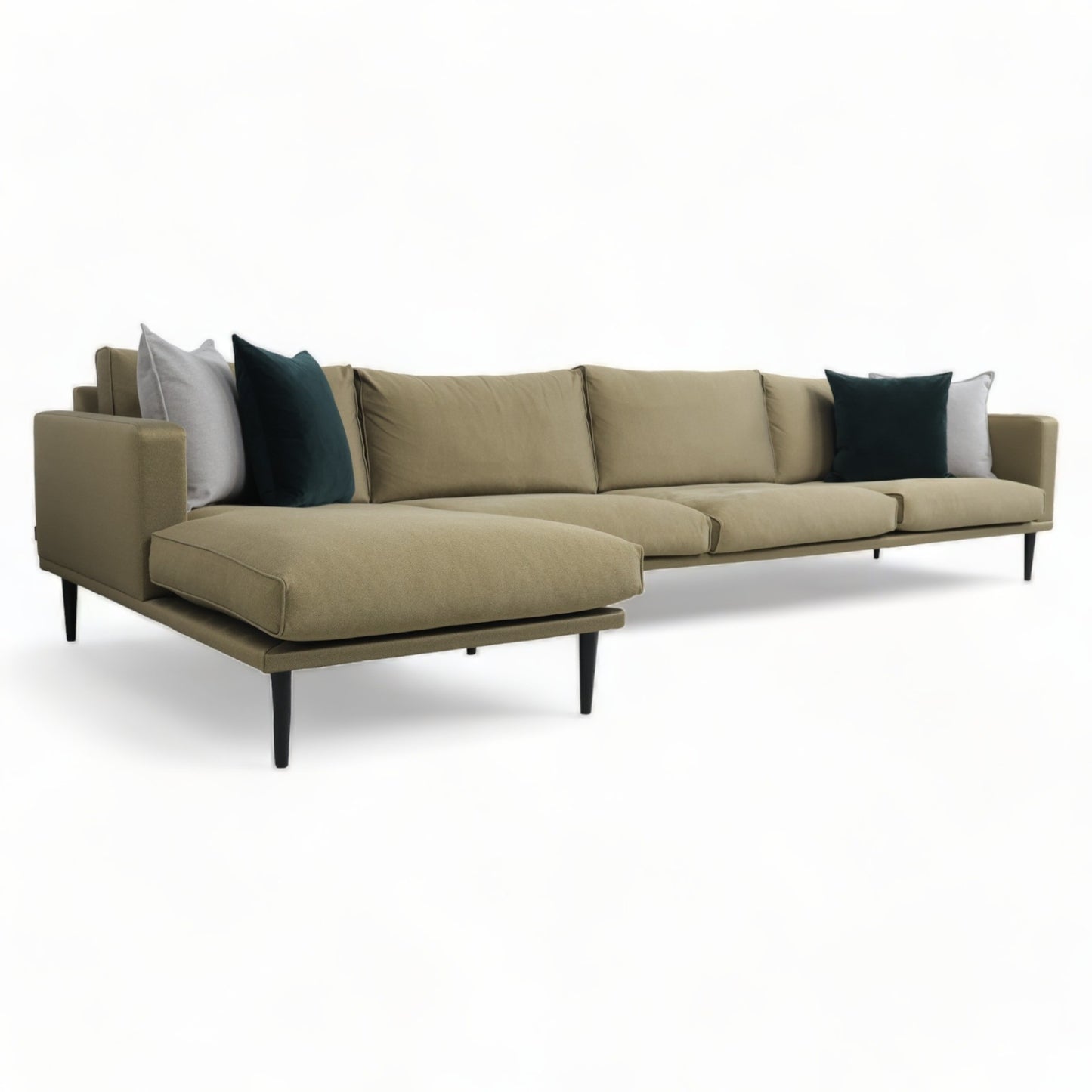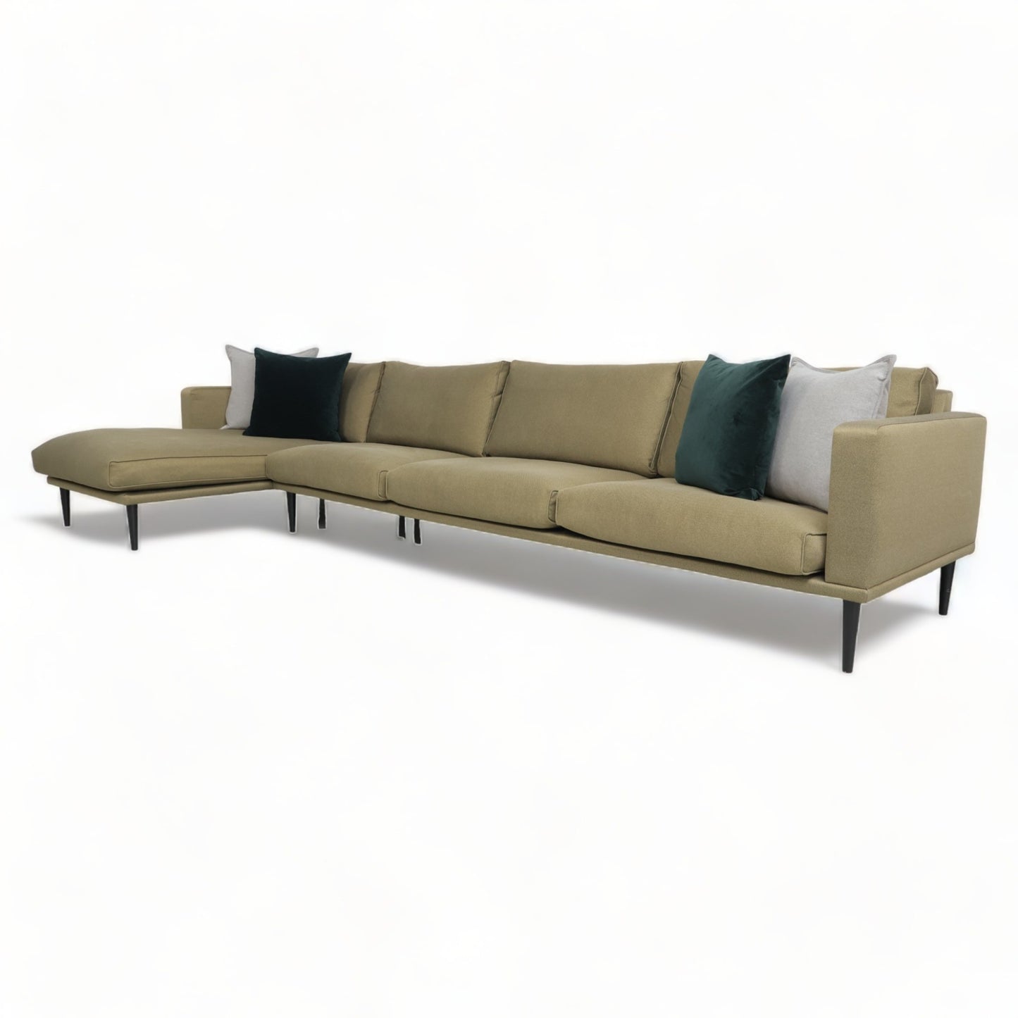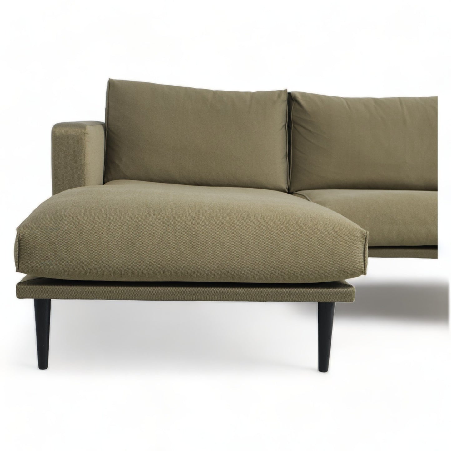 Nyrenset | Romslig olivengrønn Hjellegjerde sjeselongsofa