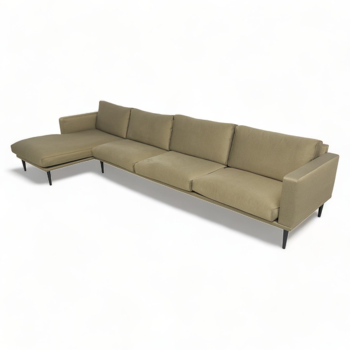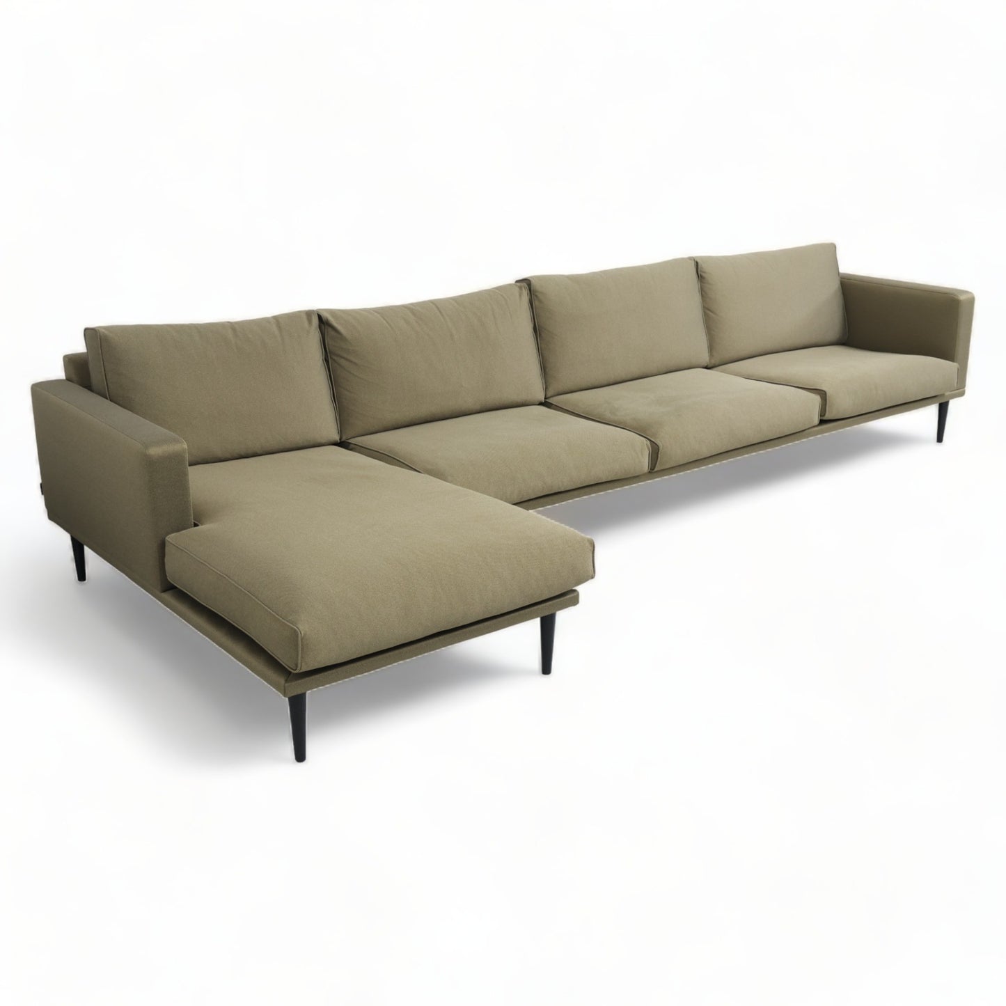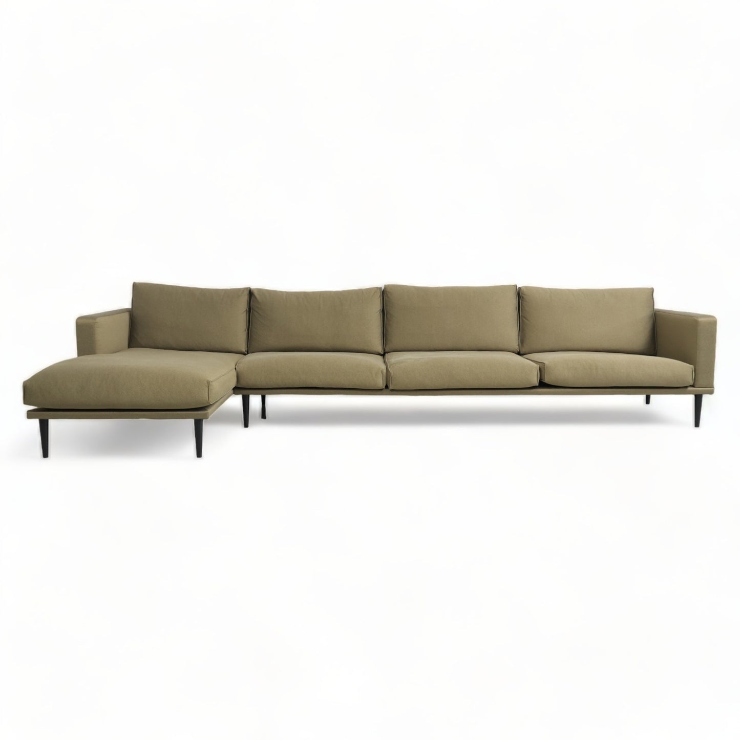Nyrenset | Romslig olivengrønn Hjellegjerde sjeselongsofa