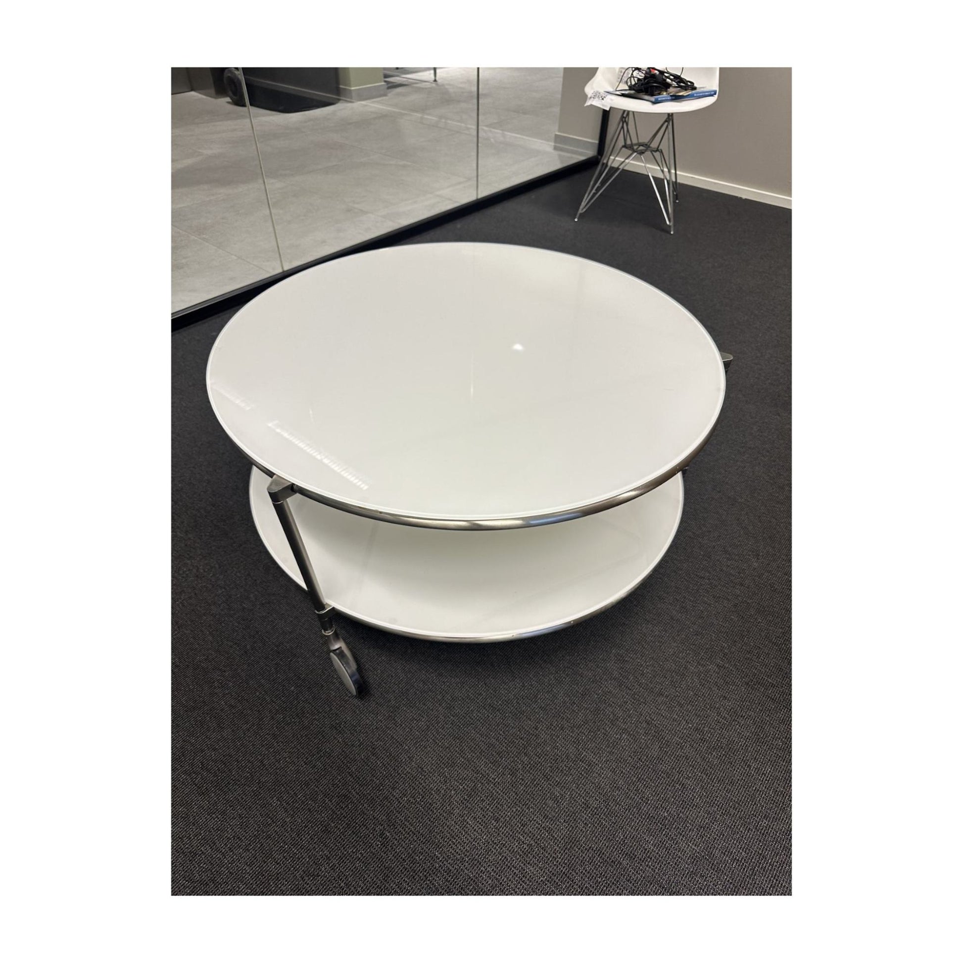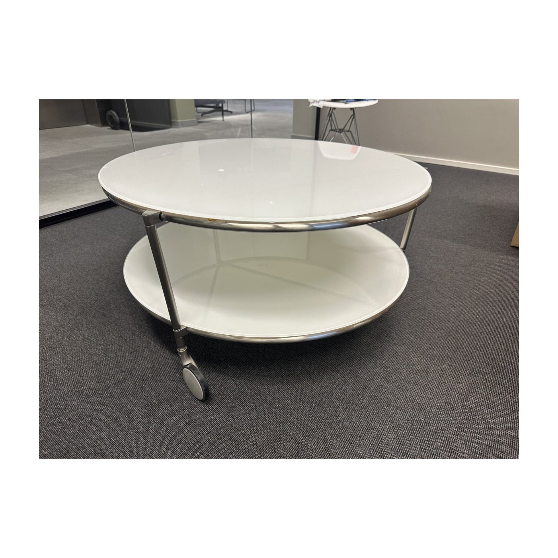 Nyrenset | Rundt bord med hjul i hvitt og metall