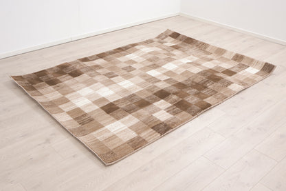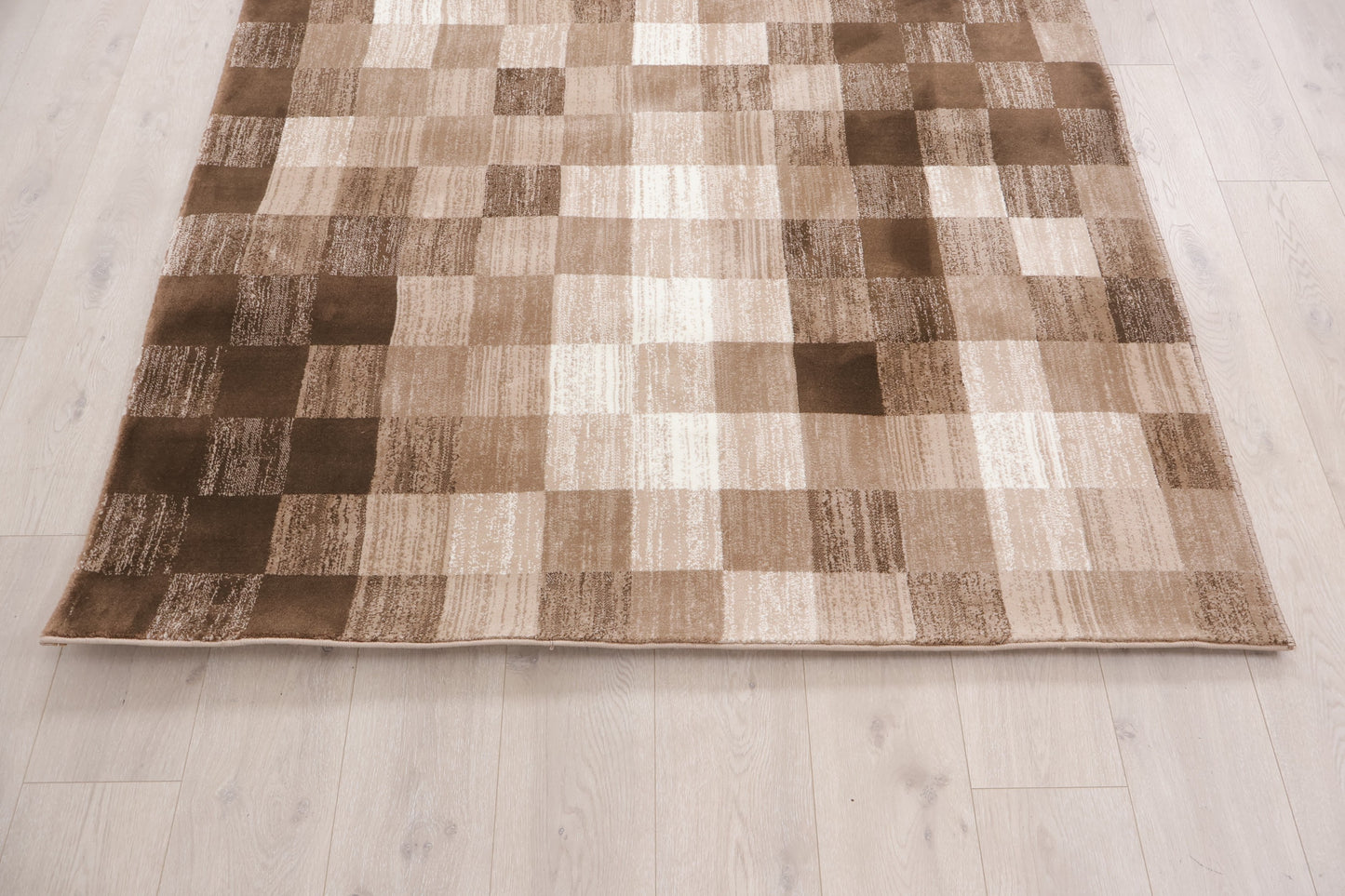 Nyrenset | Rutete Rosalinda gulvteppe i nyanser av brunt