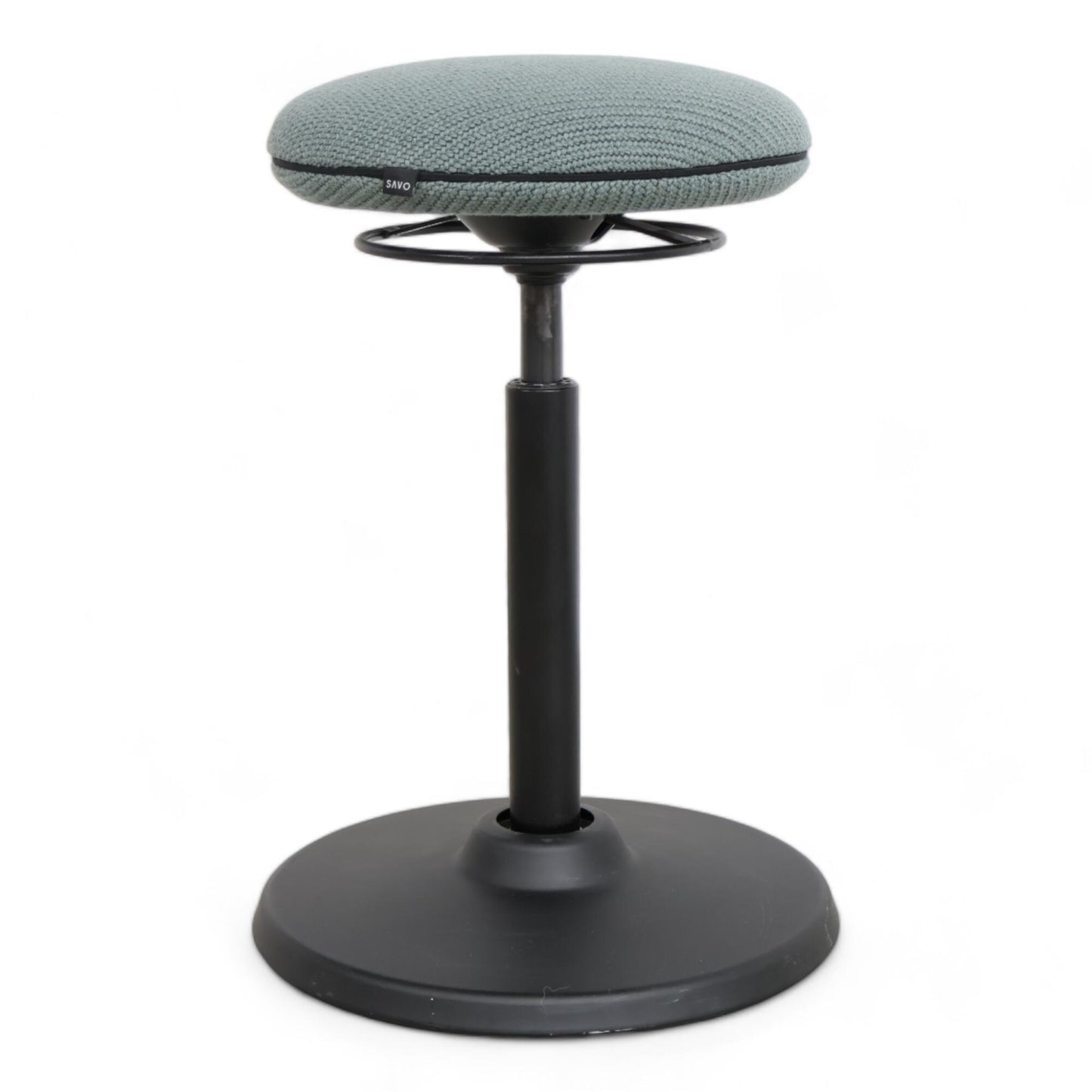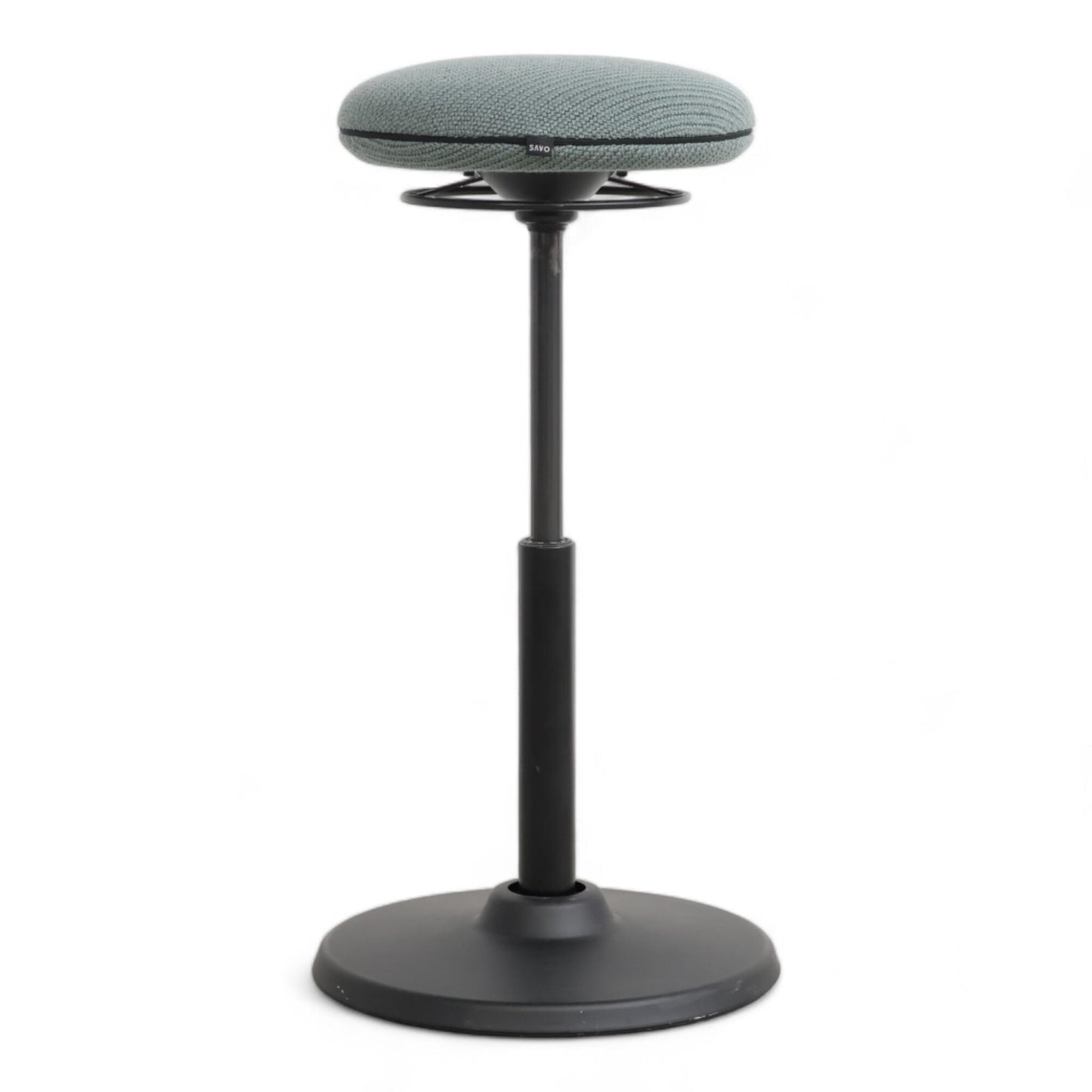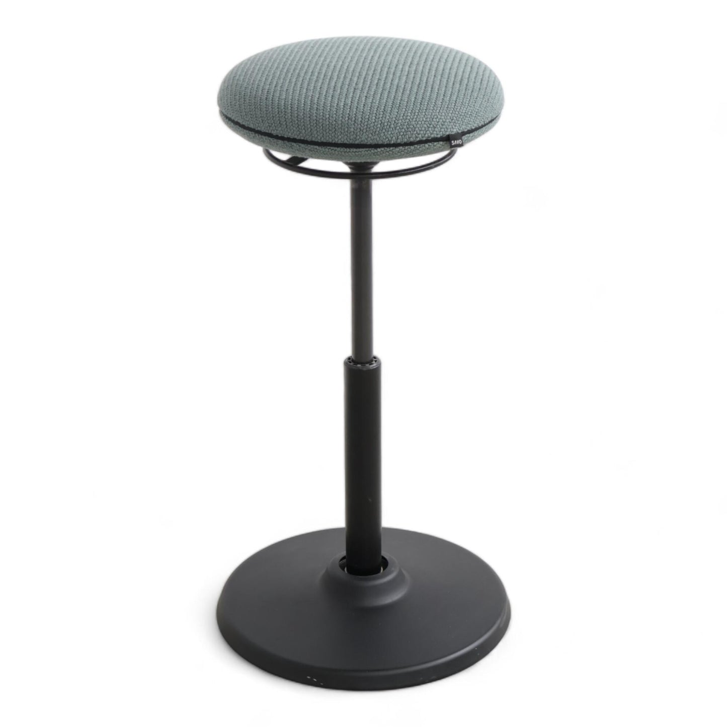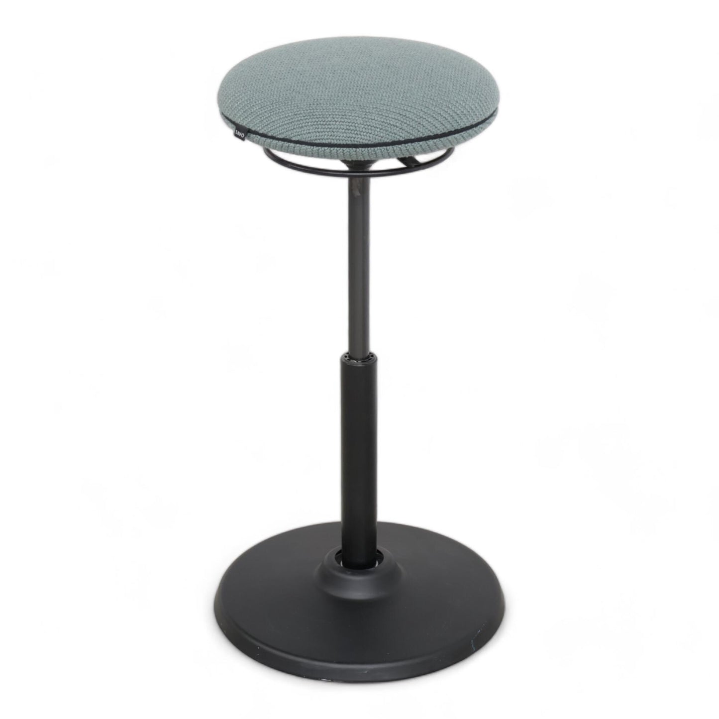 Stolen er i god tilstand, men viser normal bruksslitasje på foten og noen blå streker på siden. D