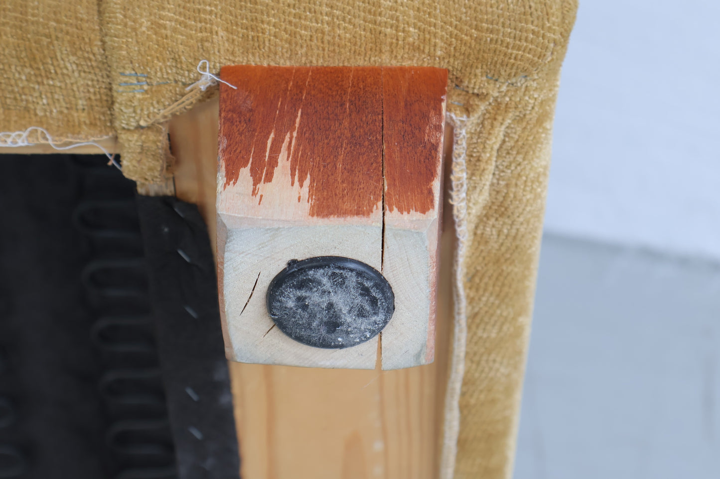 Deretter ser vi etter skader både i konstruksjonen og i stoffet, for så å utbedre disse. Videre blir sofaen grundig støvsuget med industristøvsuger før renseprosessen starter.