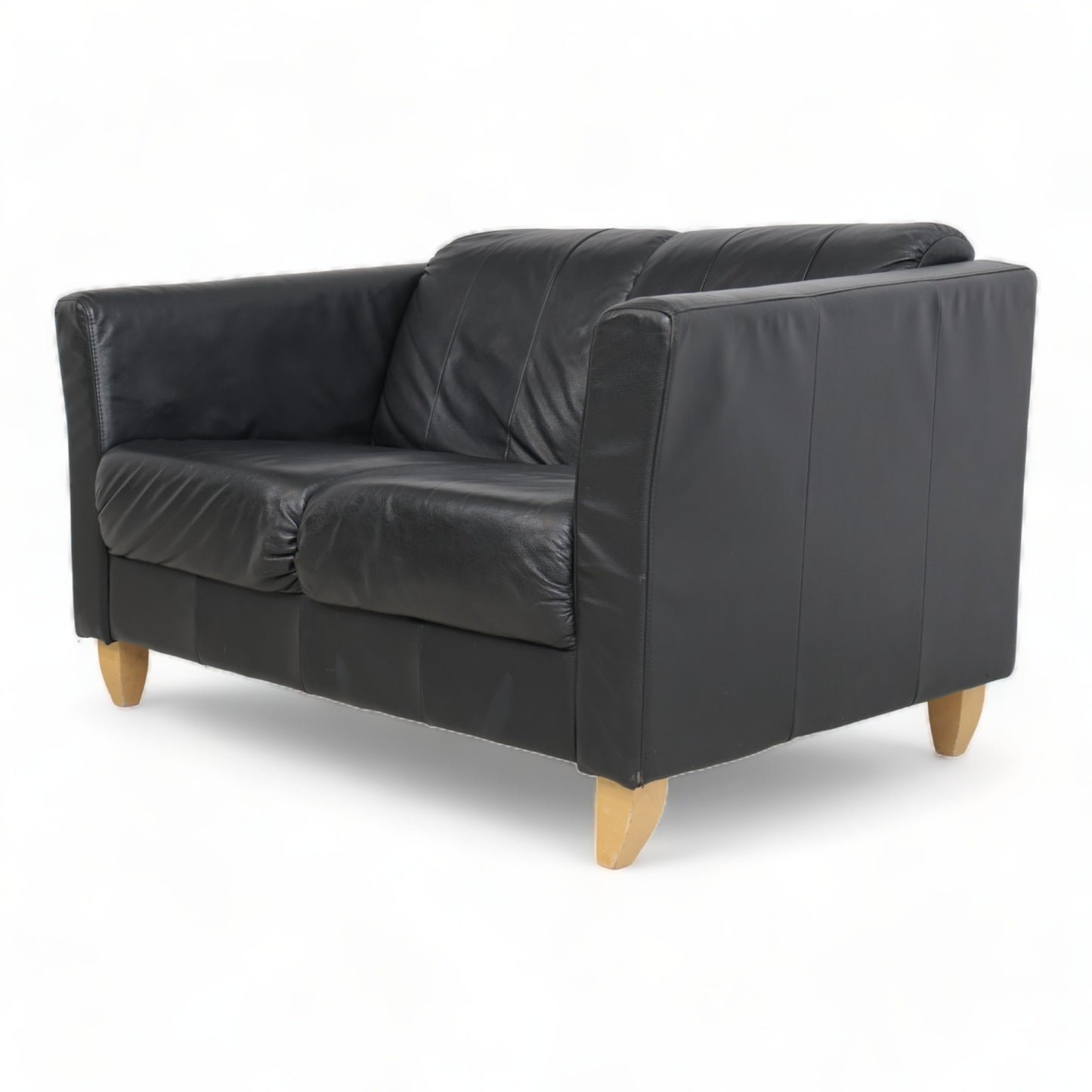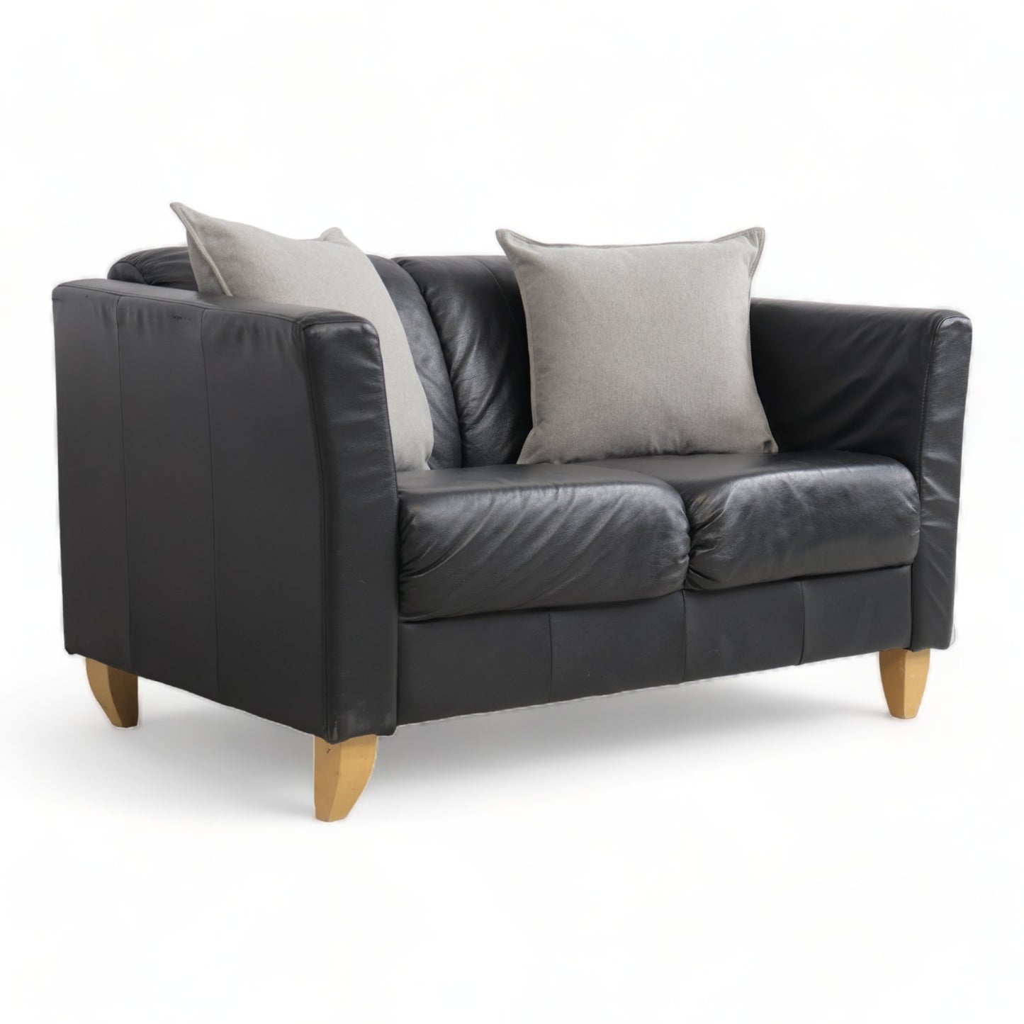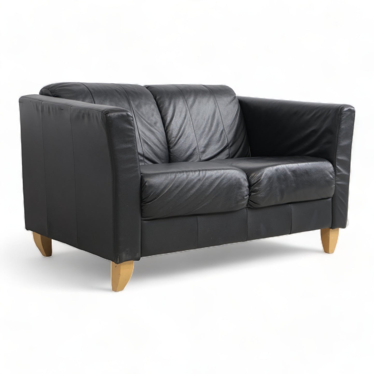 Nyrenset | Sort 2-seter skinnsofa med trebein