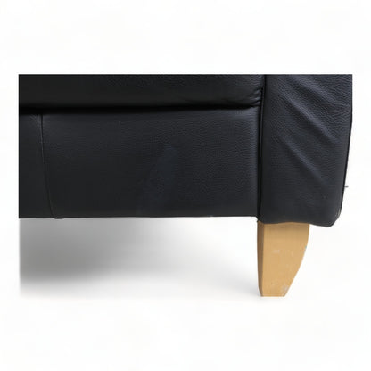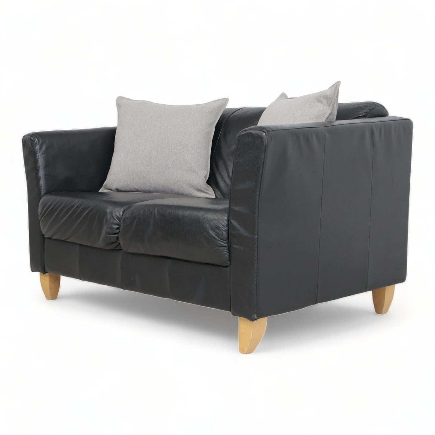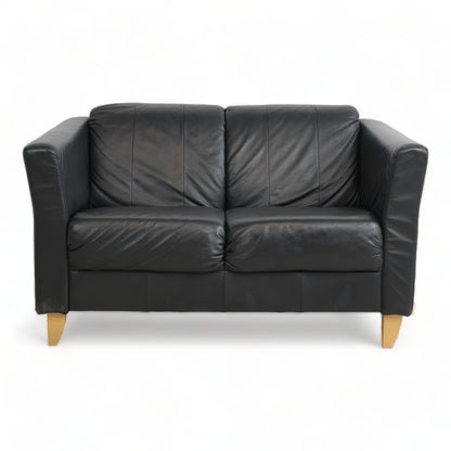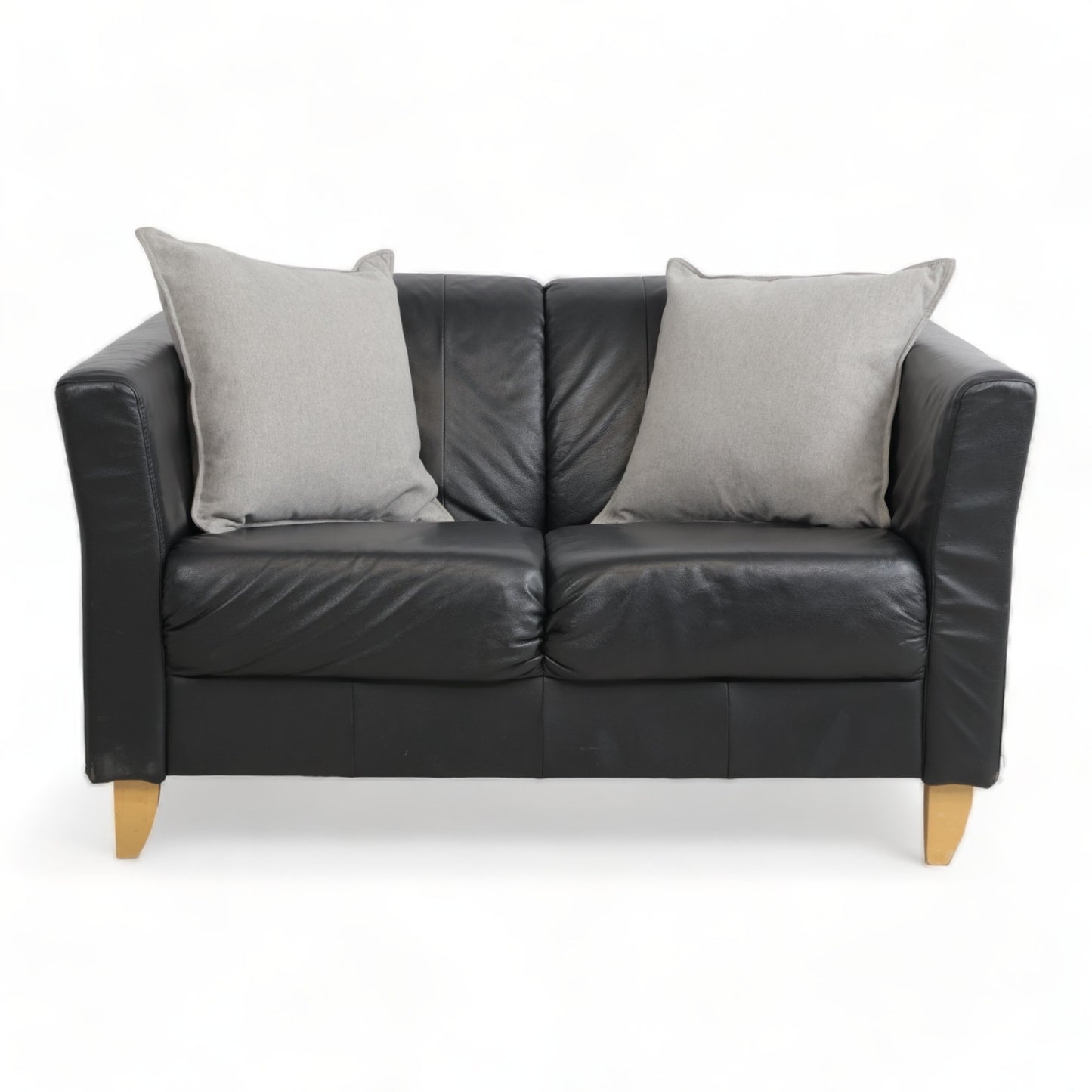 Nyrenset | Sort 2-seter skinnsofa med trebein