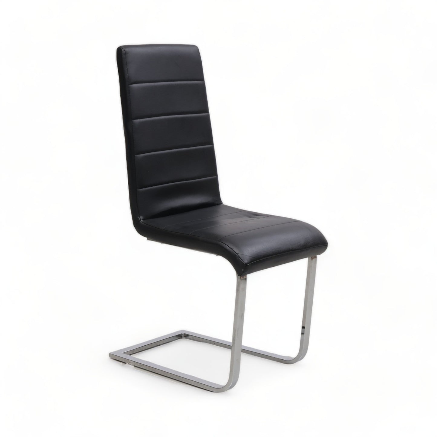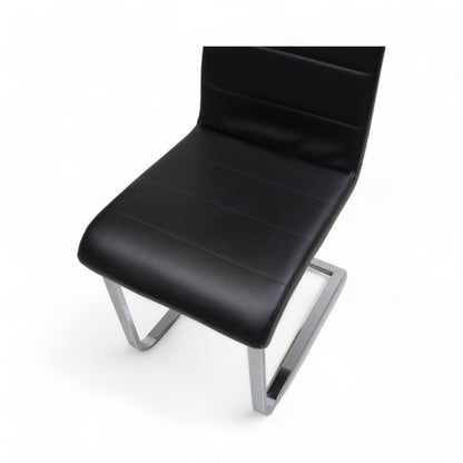 Nyrenset | Sort spisestol med linjer og krommet bueformet ben
