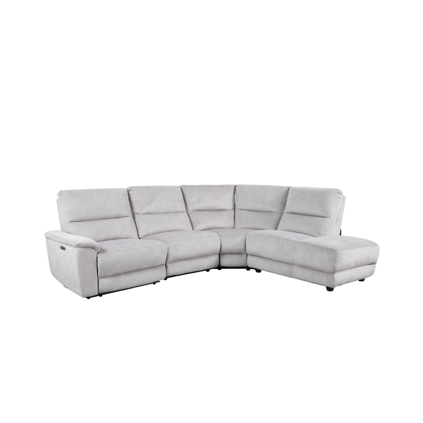Elegant og komfortabel Oakland 4-seters hjørnesofa med elektrisk recliner fra A-Møbler. Sofaen har et moderne uttrykk, kledd i mykt og slitesterkt grått tekstil som gir en varm og innbydende atmosfære i stuen.