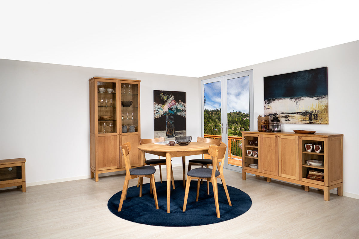 Odense spisebord fra A-Møbler kombinerer skandinavisk eleganse med funksjonalitet. Dette tidløse bordet har en uttrekk-funksjon, slik at du enkelt kan tilpasse størrelsen etter behov, og skape et innbydende rom for familie og venner.