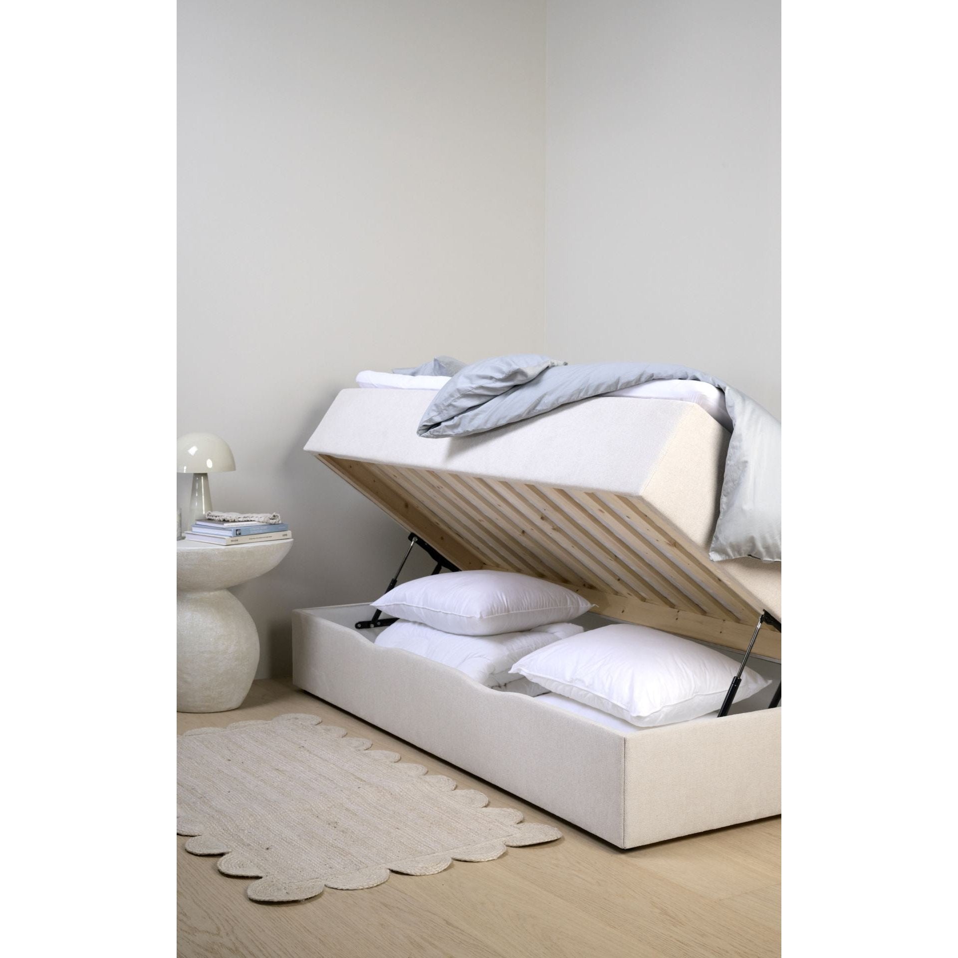 Odine seng med oppbevaring kombinerer stil og funksjonalitet på en utmerket måte. Denne beige sengen har et moderne design med rene linjer, og den tilpasser seg lett enhver innredning. Sengen er utstyrt med en komfortabel overmadrass, noe som gir en ekstra lag av mykhet og støtte. Den smarte oppbevaringsløsningen gjør det enkelt å holde soverommet ryddig, samtidig som den gir deg plass til sengetøy eller andre nødvendigheter.