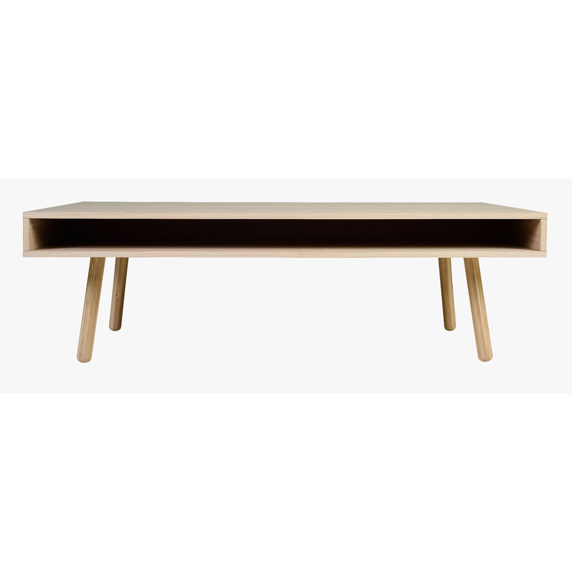 Olea sofabord fra Kid er et stilrent og moderne bord i naturfarget tre som gir et varmt og innbydende preg til stuen. Med sin enkle design og åpne oppbevaringsløsning, er dette bordet både funksjonelt og estetisk tiltalende, perfekt for deg som ønsker et minimalistisk uttrykk.