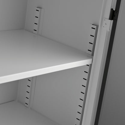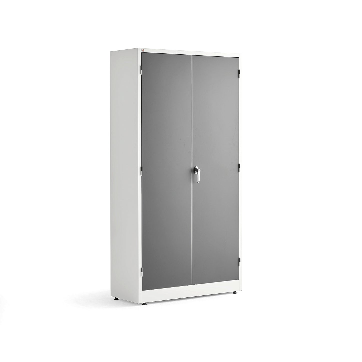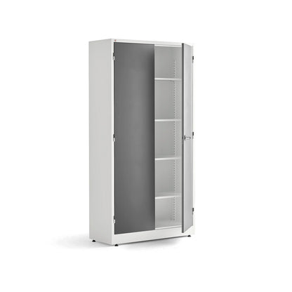 Praktisk stålskap fra AJ Produkter, perfekt for både kontor og lager. Med fire flyttbare hylleplater får du god plass til oppbevaring av diverse artikler. Med en 3-punkts lås og to nøkler blir skapet ekstra sikkert.