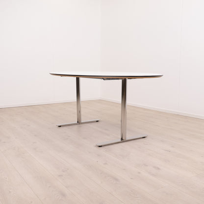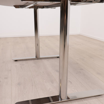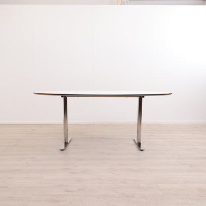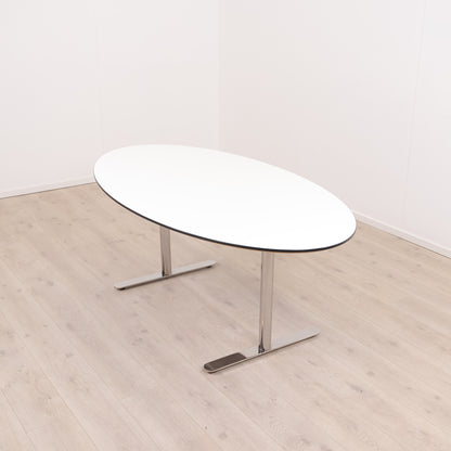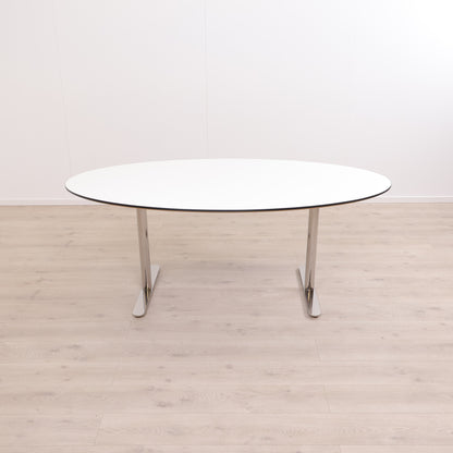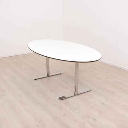 Ovalt bord med krom undertell og grå bordplate. 190x100 cm