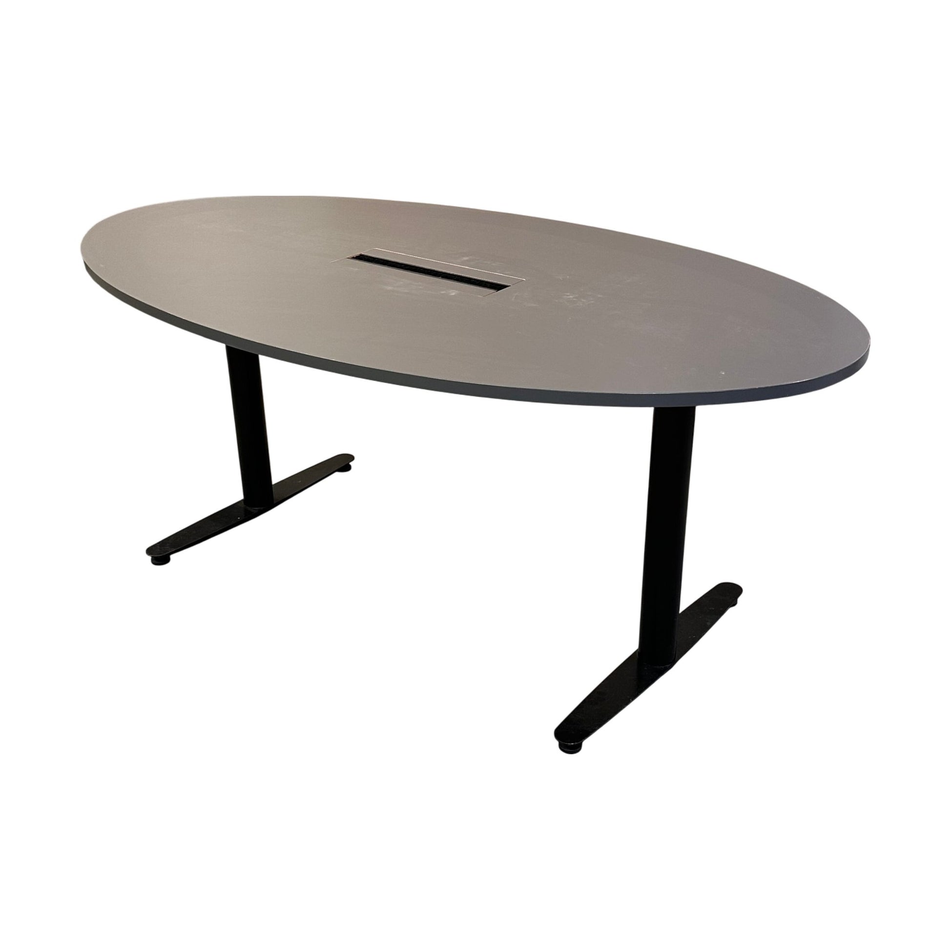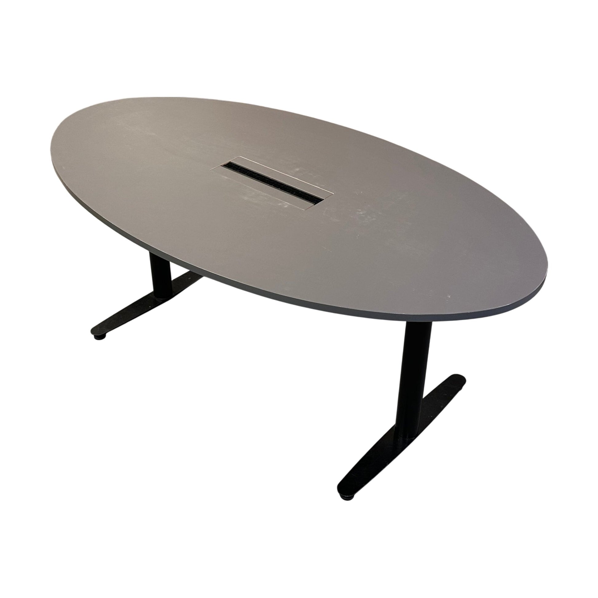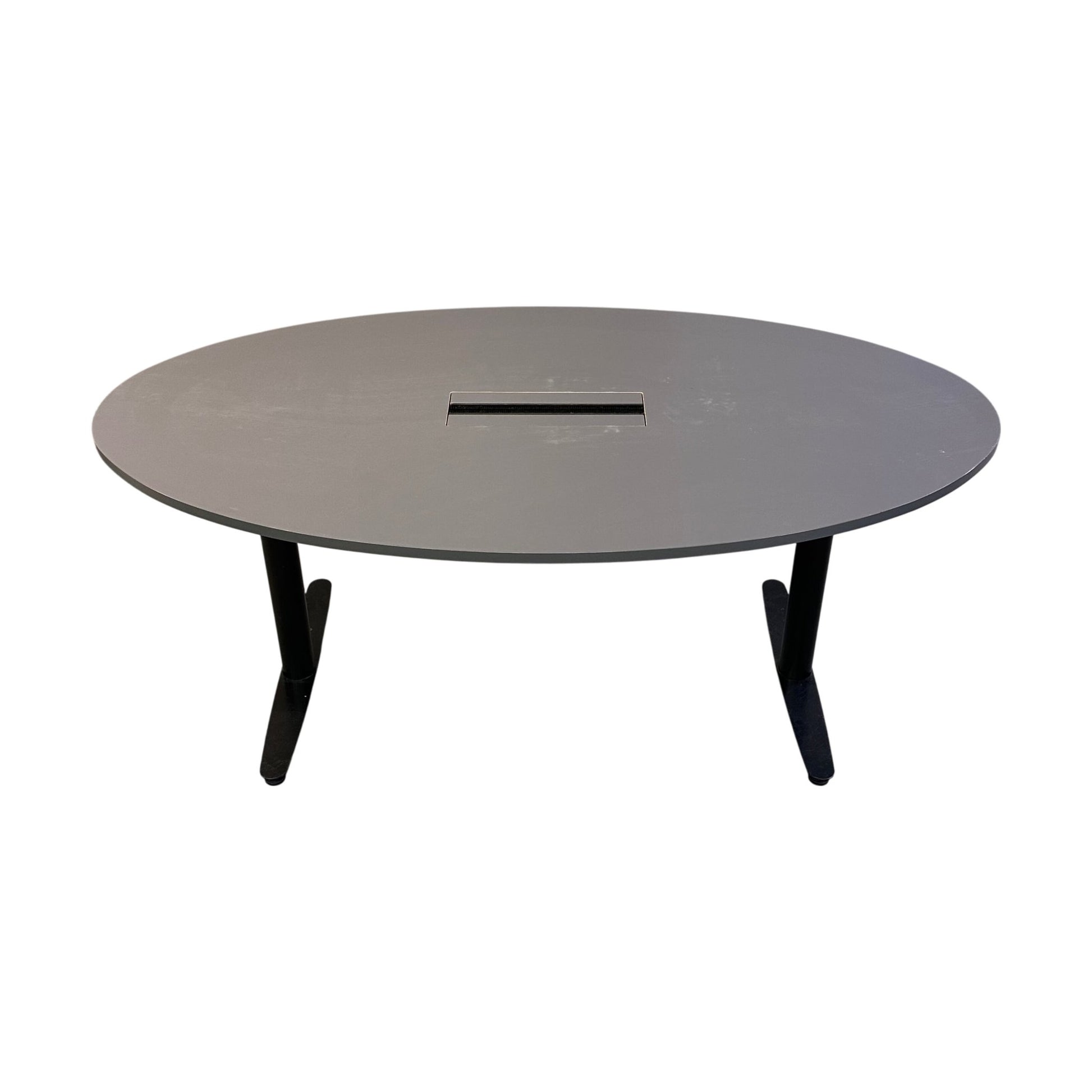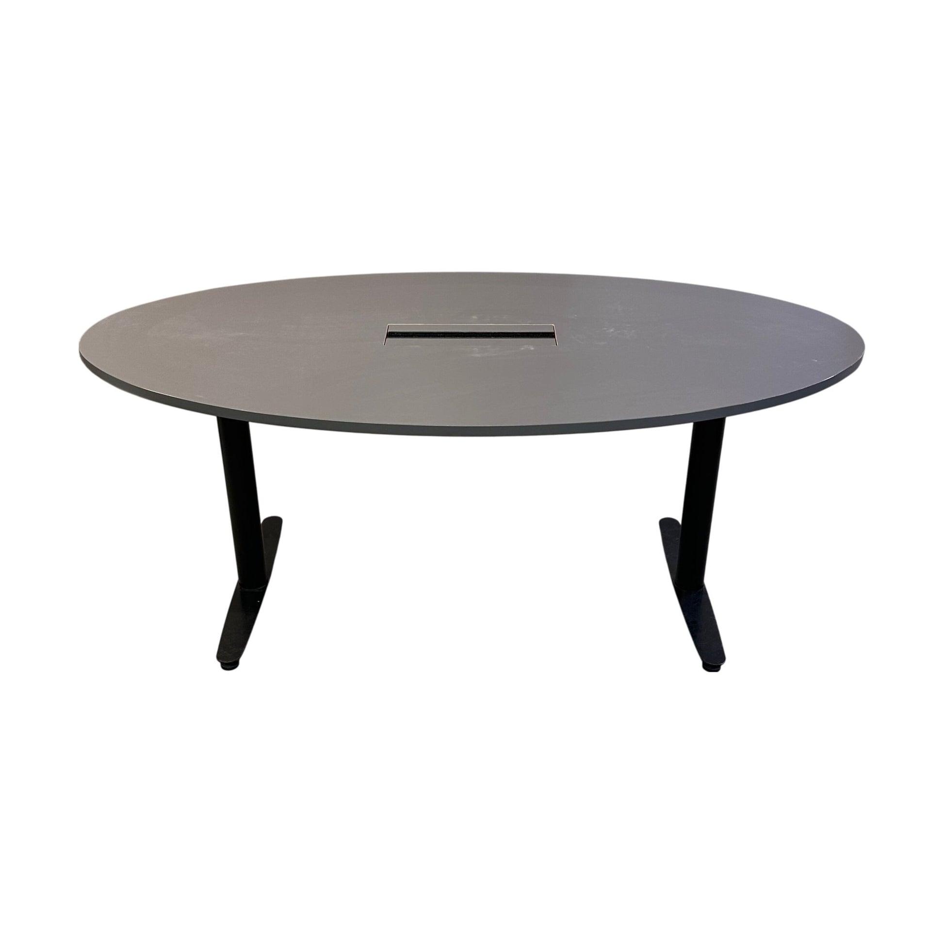Ovalt møtebord med en stilren grå bordplate og praktisk kabelluke i midten, perfekt for moderne kontorer og møterom. Den romslige bordflaten på 180x100 cm gir god plass til deltakere og gir et profesjonelt preg.
