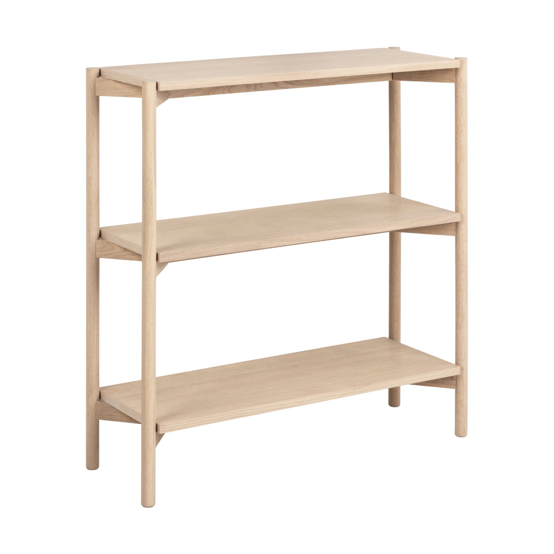 Elegant Oxford bokhylle fra A-Møbler i et naturlig trefarget design. Denne bokhyllen har tre hyller med et minimalistisk og stilrent uttrykk, perfekt for oppbevaring av bøker og dekorasjoner. Den lyse, nøttefarget finishen gir et friskt innslag i ethvert moderne hjem.