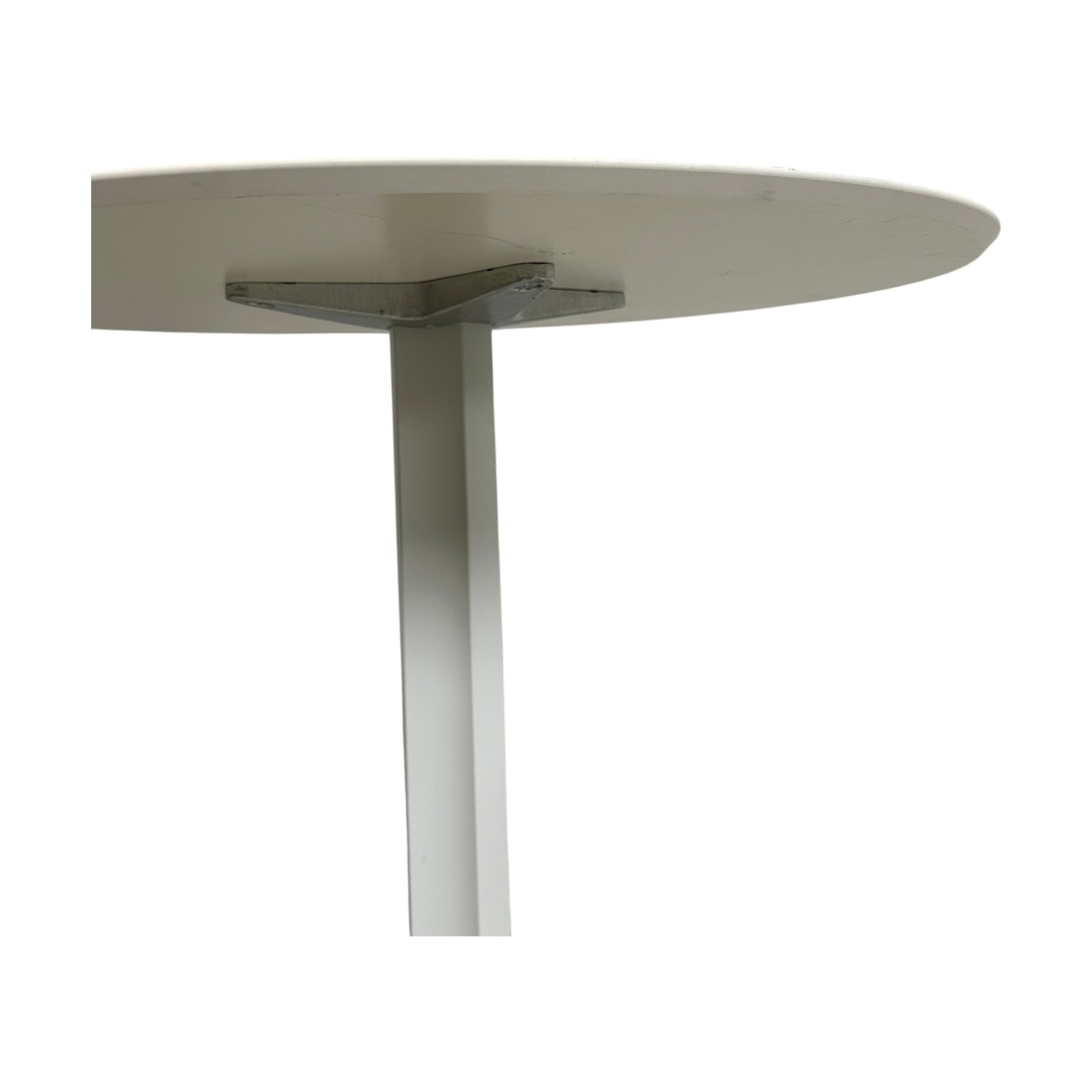 Bordet er i god stand, men har noen skrammer på bena som følger av bruk. Disse merker påvirker ikke bordets funksjonalitet, og det kan fortsatt brukes effektivt til møter eller som et sosialt samlingspunkt.
