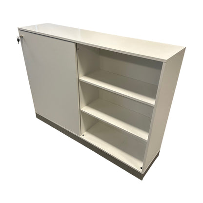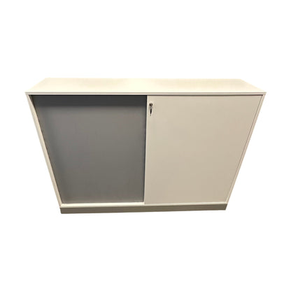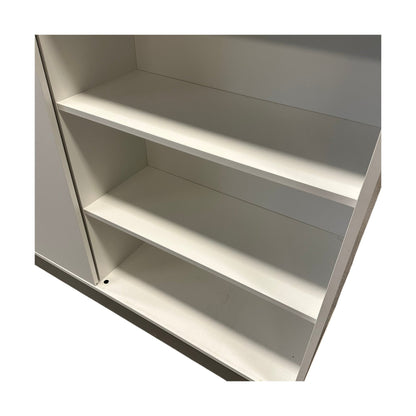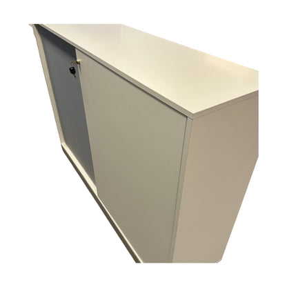 Stilrent kontorskap med dører på begge sider som gir enkel tilgang. Dette skapet er ideelt for kontormiljøer hvor plassutnyttelse og funksjonalitet er viktig, og passer perfekt til oppbevaring av dokumenter og kontorutstyr.