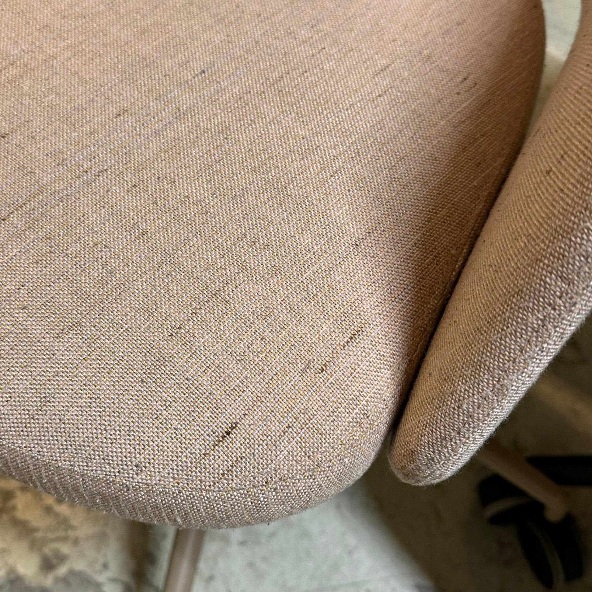 Moderne møteromsstol fra Materia med et stilrent og funksjonelt design. Stolen har et polstret sete trukket i slitesterkt rosa stoff, som gir et friskt og livlig preg. Den ergonomiske utformingen og de runde armene gir god støtte og komfort, noe som gjør den velegnet for lange møter. Stolen er utstyrt med hjul, noe som gjør den enkel å flytte rundt etter behov.