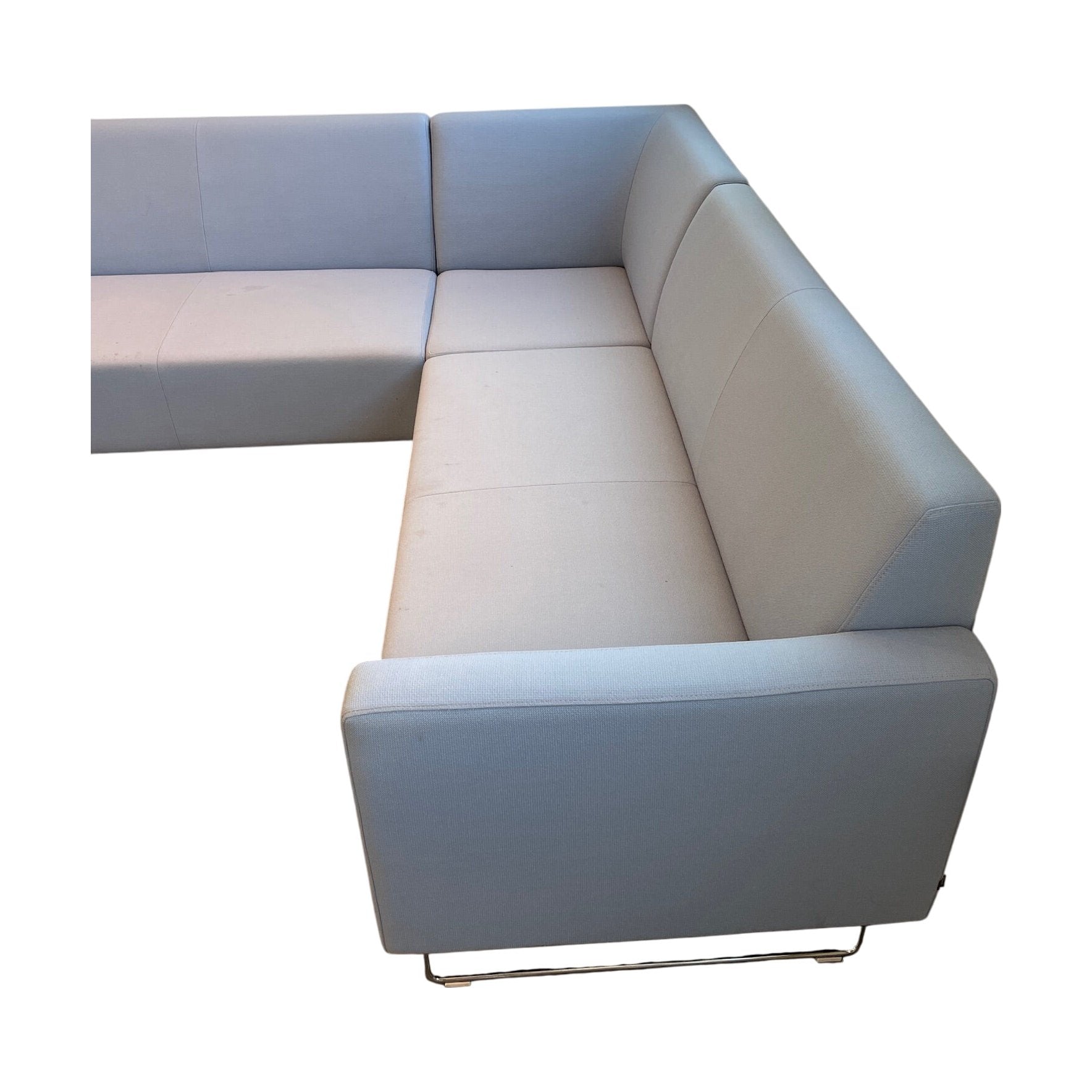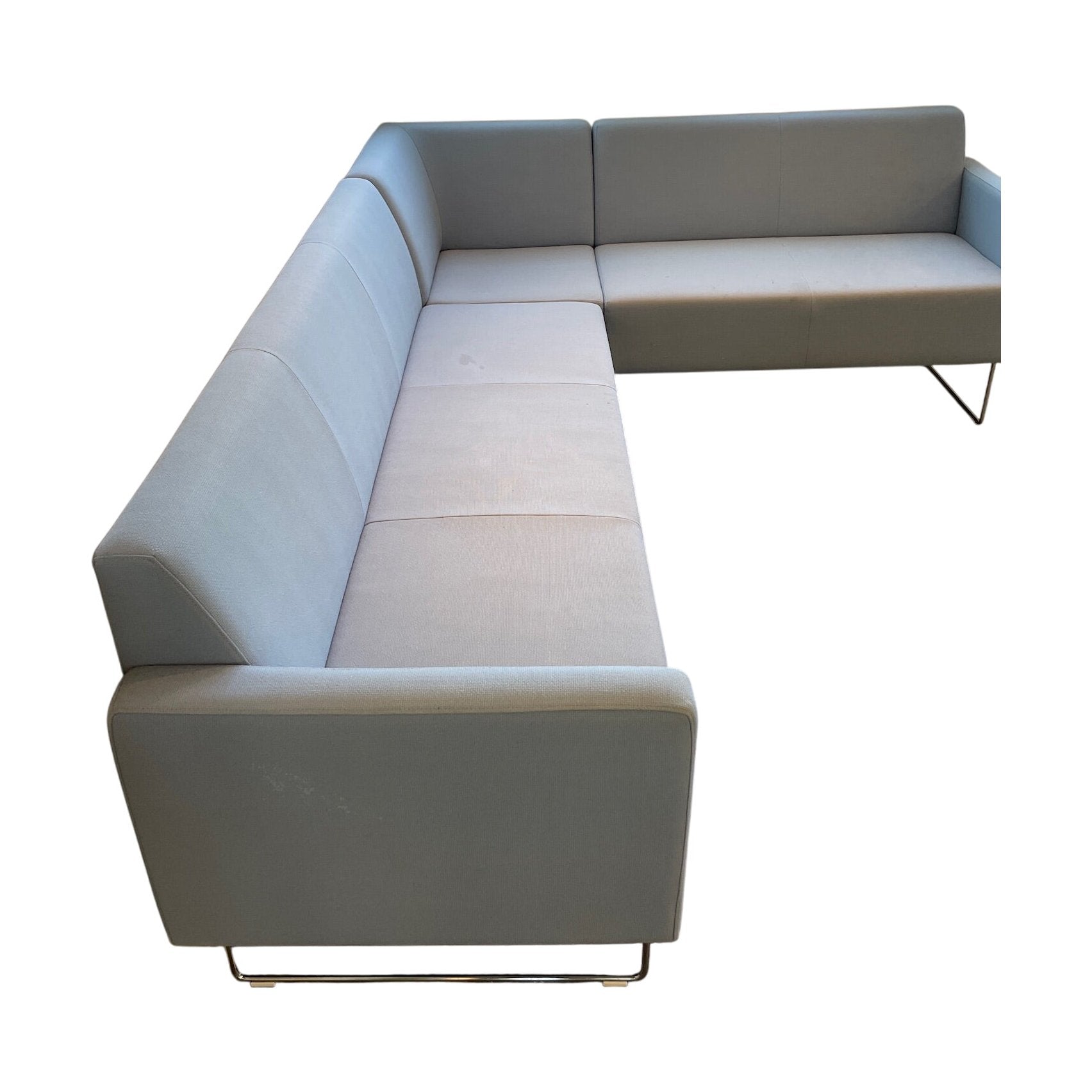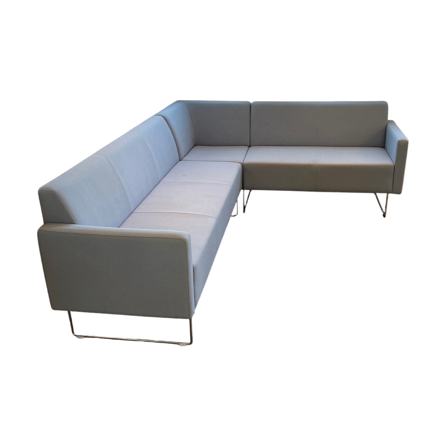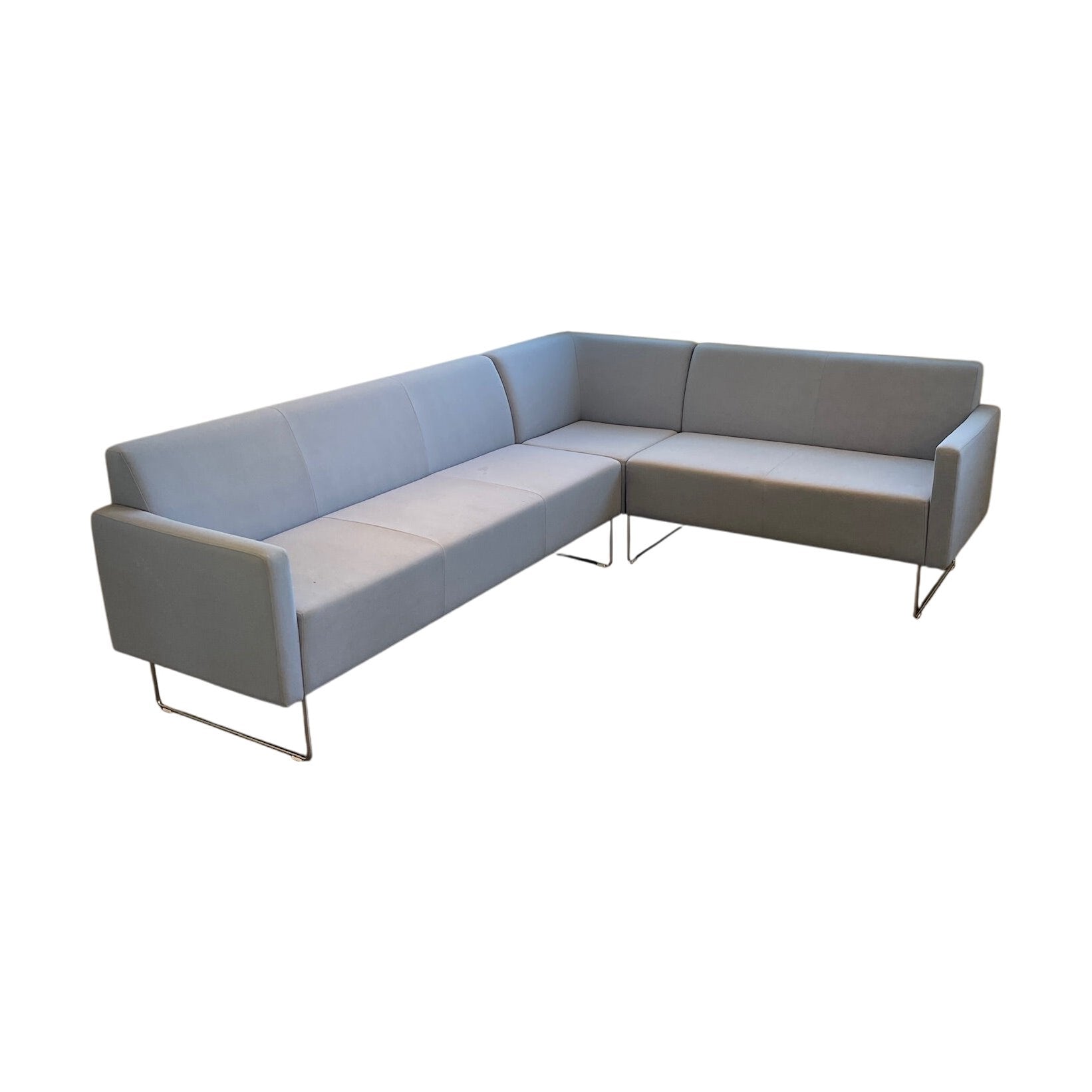 Moderne og stilren Pivot hjørnesofa fra VAD, perfekt for kontorlandskapet eller loungeområder. Denne sofaen har en lys blå farge, som gir et friskt og innbydende preg til ethvert rom. Sofaens enkle, men elegante design med rette linjer og minimalistiske detaljer, gjør den til et utmerket valg for både arbeid og avslapning.
