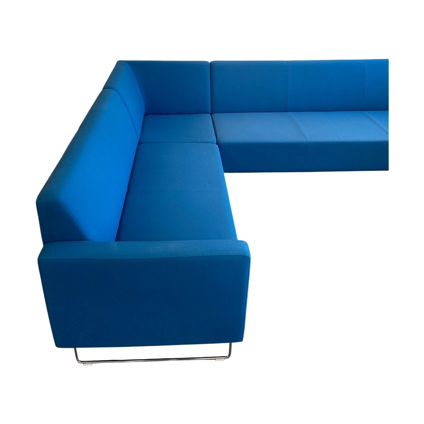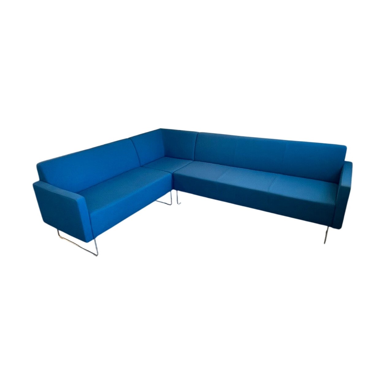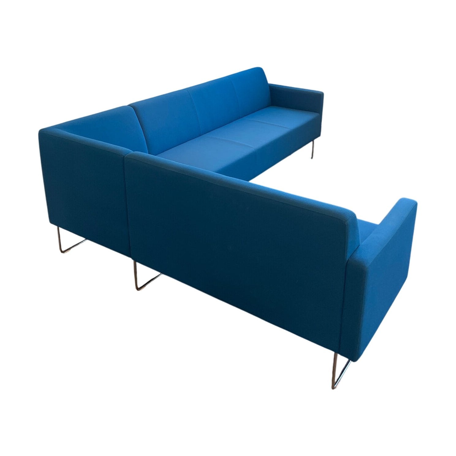 Moderne og stilren Pivot hjørnesofa fra VAD, perfekt for kontorlandskapet eller loungeområder. Denne sofaens uformelle design og sjøblå farge gir et friskt og energisk preg, som bidrar til å skape et innbydende sittemiljø. Sofaens karakteristiske rette linjer og minimalistiske stil gjør den lett å integrere i ulike interiørstiler.