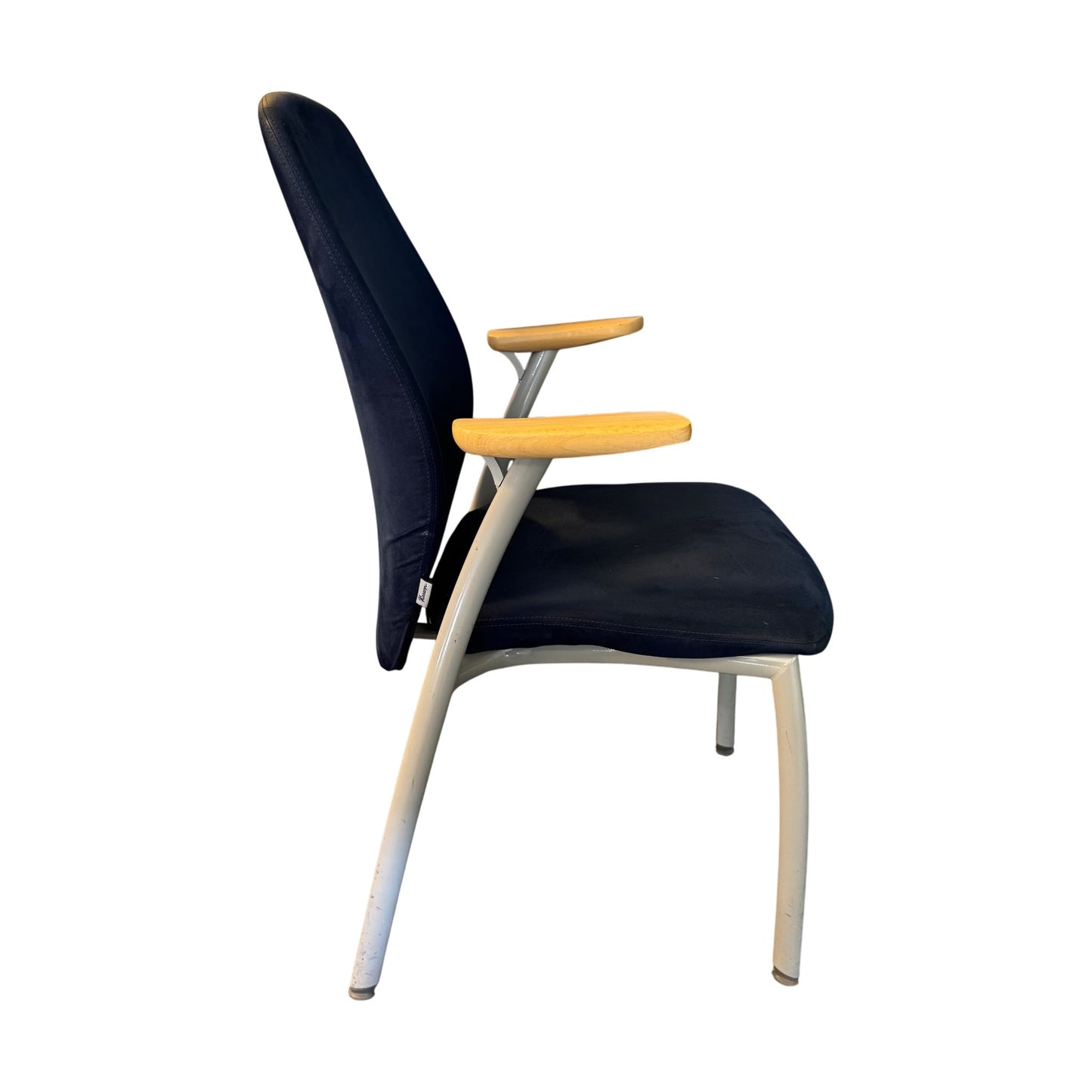 Moderne møteromsstol fra Kinnarps med et stilrent og funksjonelt design. Stolen har et komfortabelt sete i blått stoff og er utstyrt med armlener i trefarget materiale, noe som gir en varme til det ellers minimalistiske utseendet. Den ergonomiske formen på ryggen gir god støtte, og stolen er velegnet for lange møter og konferanser. Den har også en solid stålramme som gir stabilitet og holdbarhet.