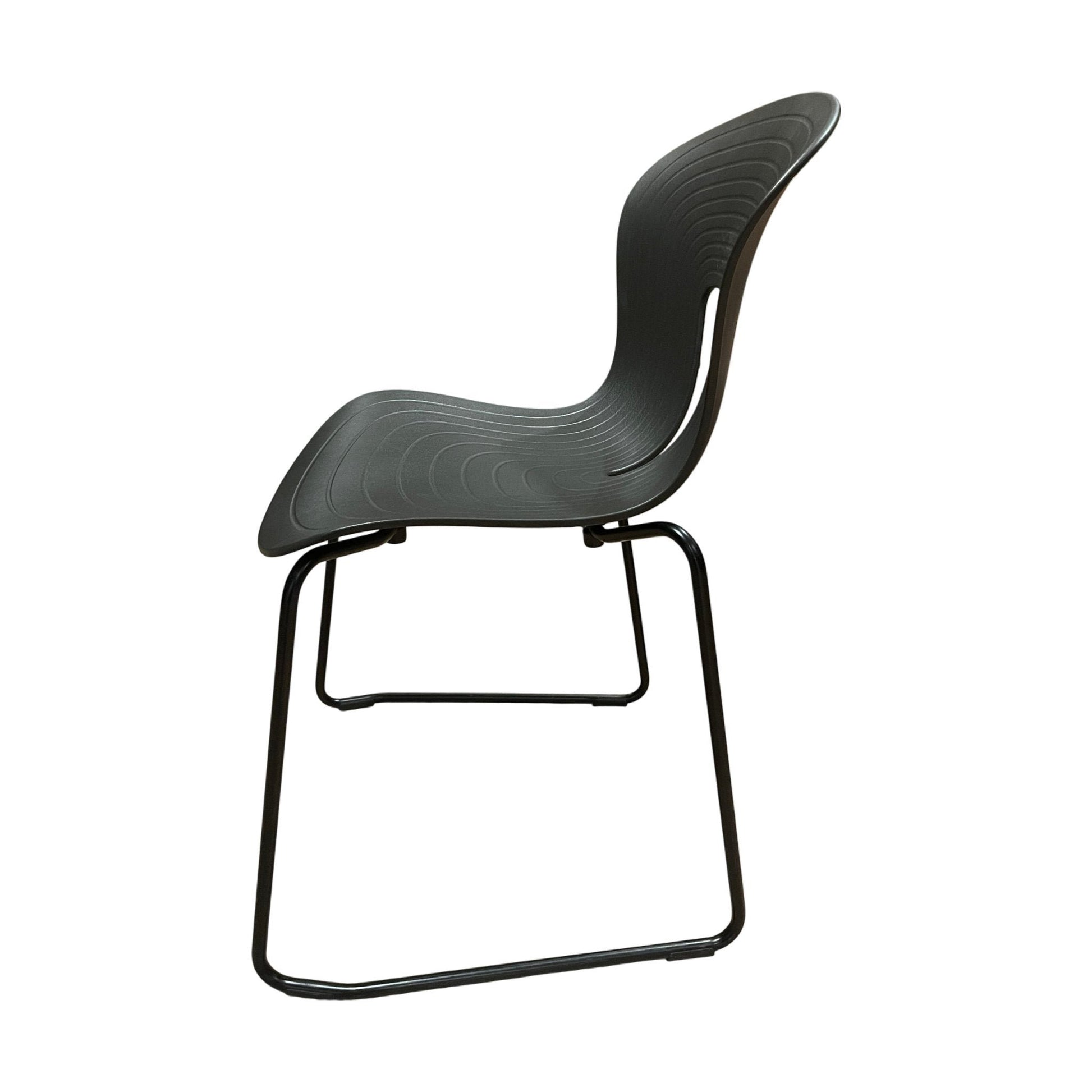Pond møteromsstol designet av Olav Eldøy, med et moderne og funksjonelt uttrykk. Stolen har en stilren grå plastsete med bølgemønster som gir både estetikk og komfort. Den er enkeltstablebar, noe som gjør den praktisk for fleksibel oppbevaring i møterom og kontorer. Rammen er laget av slitesterk metall, og stolen er velegnet for bruk i varierte sammenhenger, inkludert møter, konferanser og fellesområder.