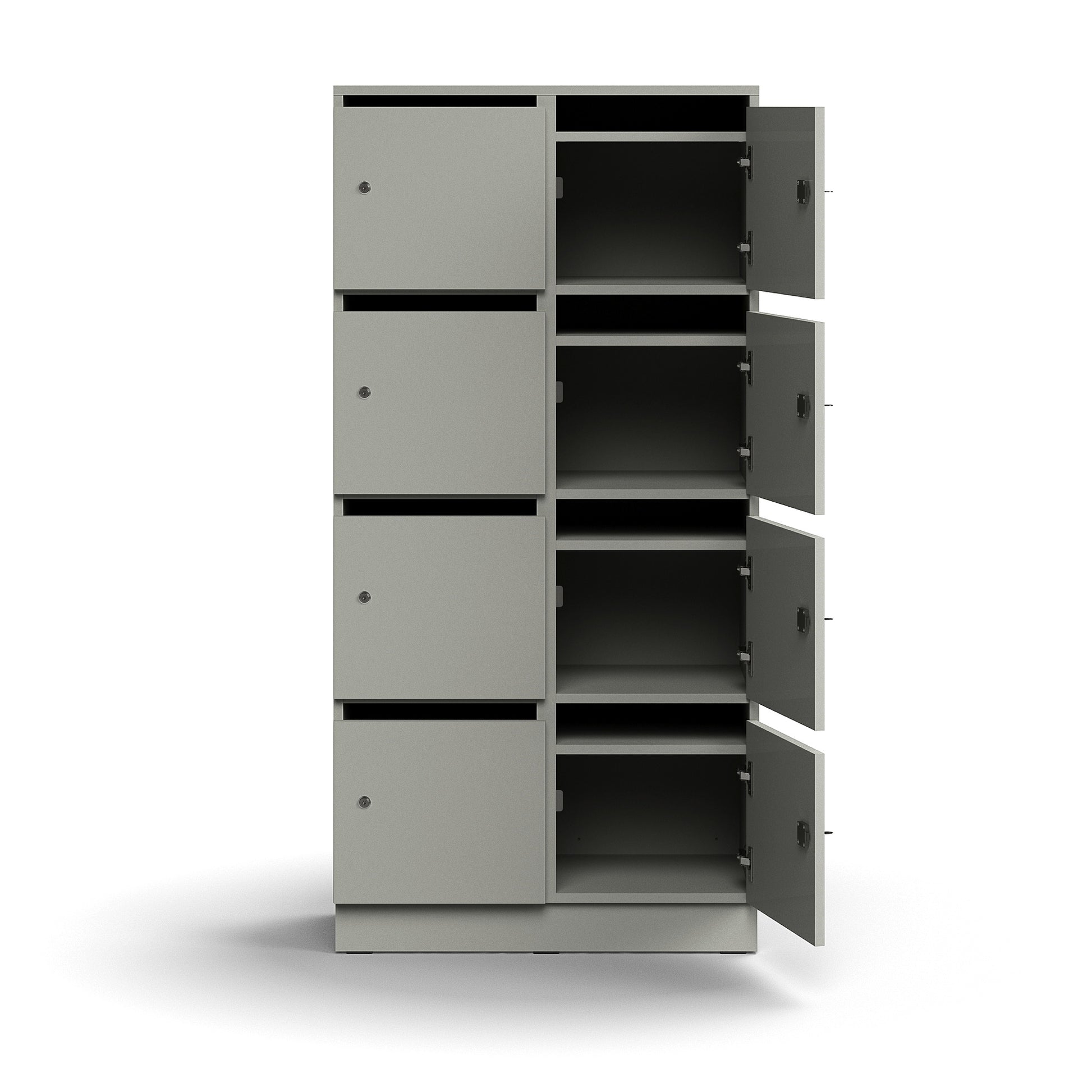 Postsorteringshylle QBUS, 8 rom, sokkel, H1636 B800 D420 mm, lys grå