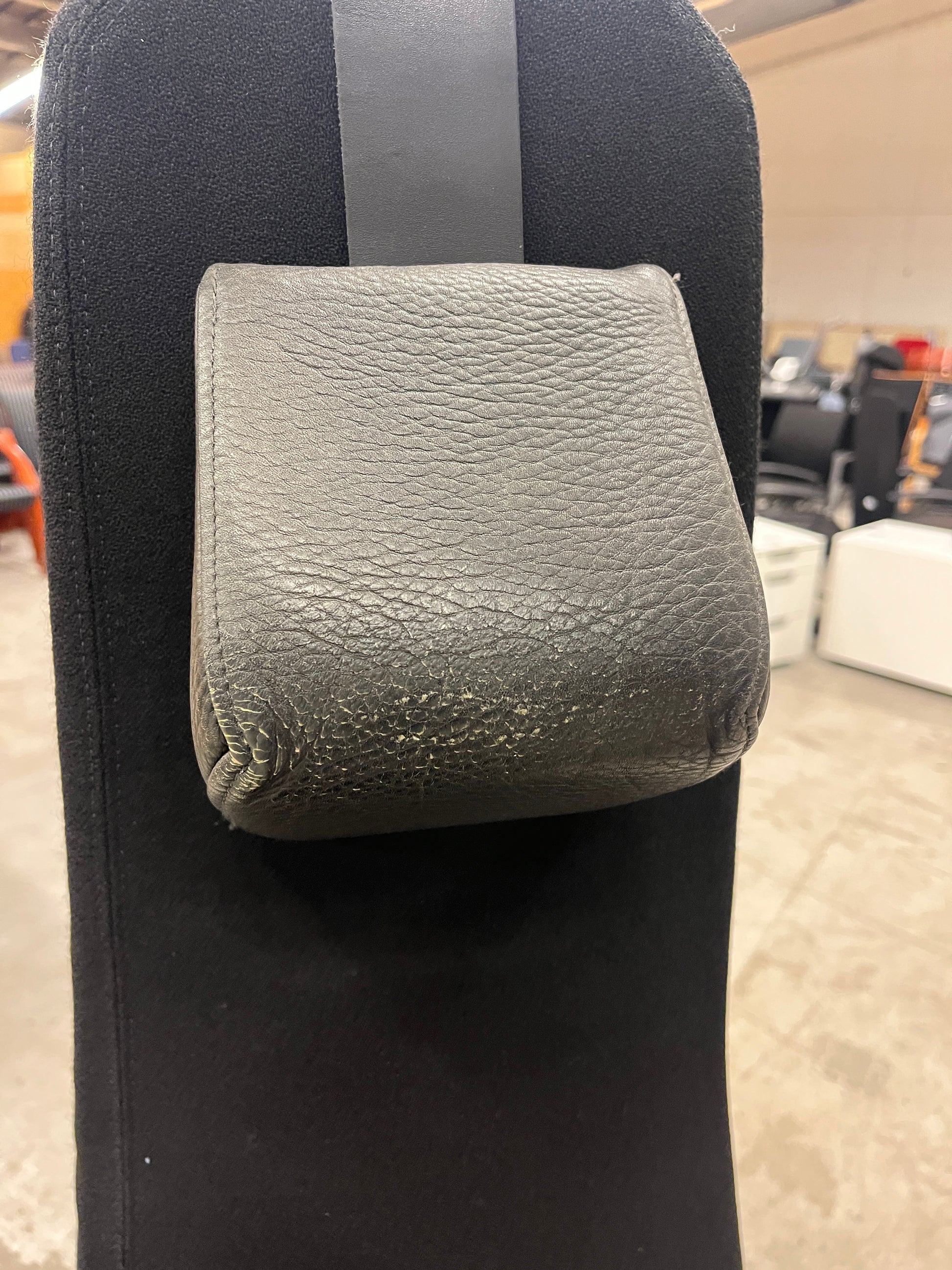 Stolen er i helhetlig god stand, selv om nakkestøtten er slitt. Nakkestøtten er avtakbar, noe som gir muligheten til å justere funksjonaliteten etter eget behov.